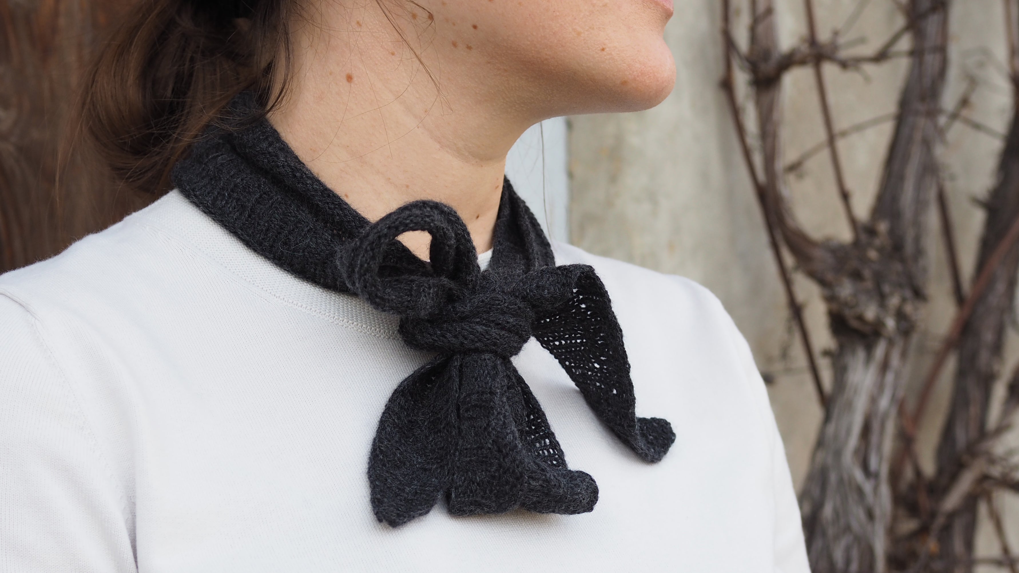 Die Anleitung ist für drei verschiedene Längen, sodass die verschiedenen Schals zweimal, dreimal, oder der ganz lange viermal um den Hals gewickelt werden können. Unser Liebling ist der kurze sSchal mit 120 cm, der sogar als Schleifchen getragen werden kann.
