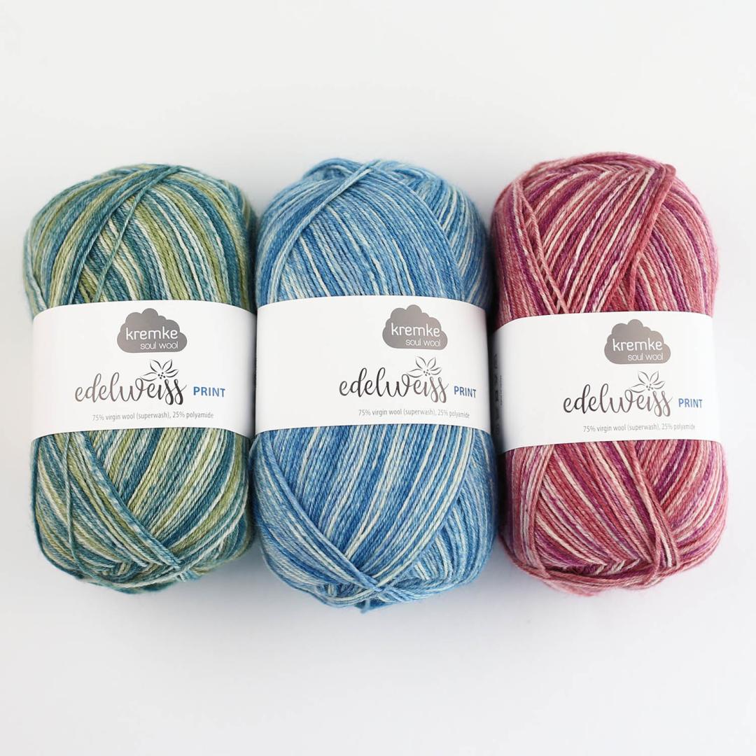 m Set enthalten:• Kremke Edelweiss Alpaka 4-fach (25 g = 100 m)65 % Schurwolle, 25 % Polyamid, 10 % Alpaka- 3 Knäuel Farbe 28 (green yellow)- 1 Knäuel Farbe 29 (spring green)- 1 Knäuel Farbe 24 (dark brown)