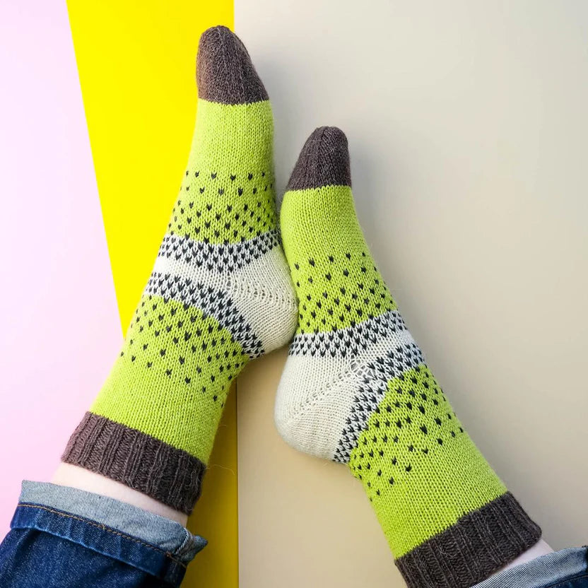Strickset BananensockenPerfekt um mit dem Stricken anzufangen! Die Socken kommen ganz ohne Ferse aus.