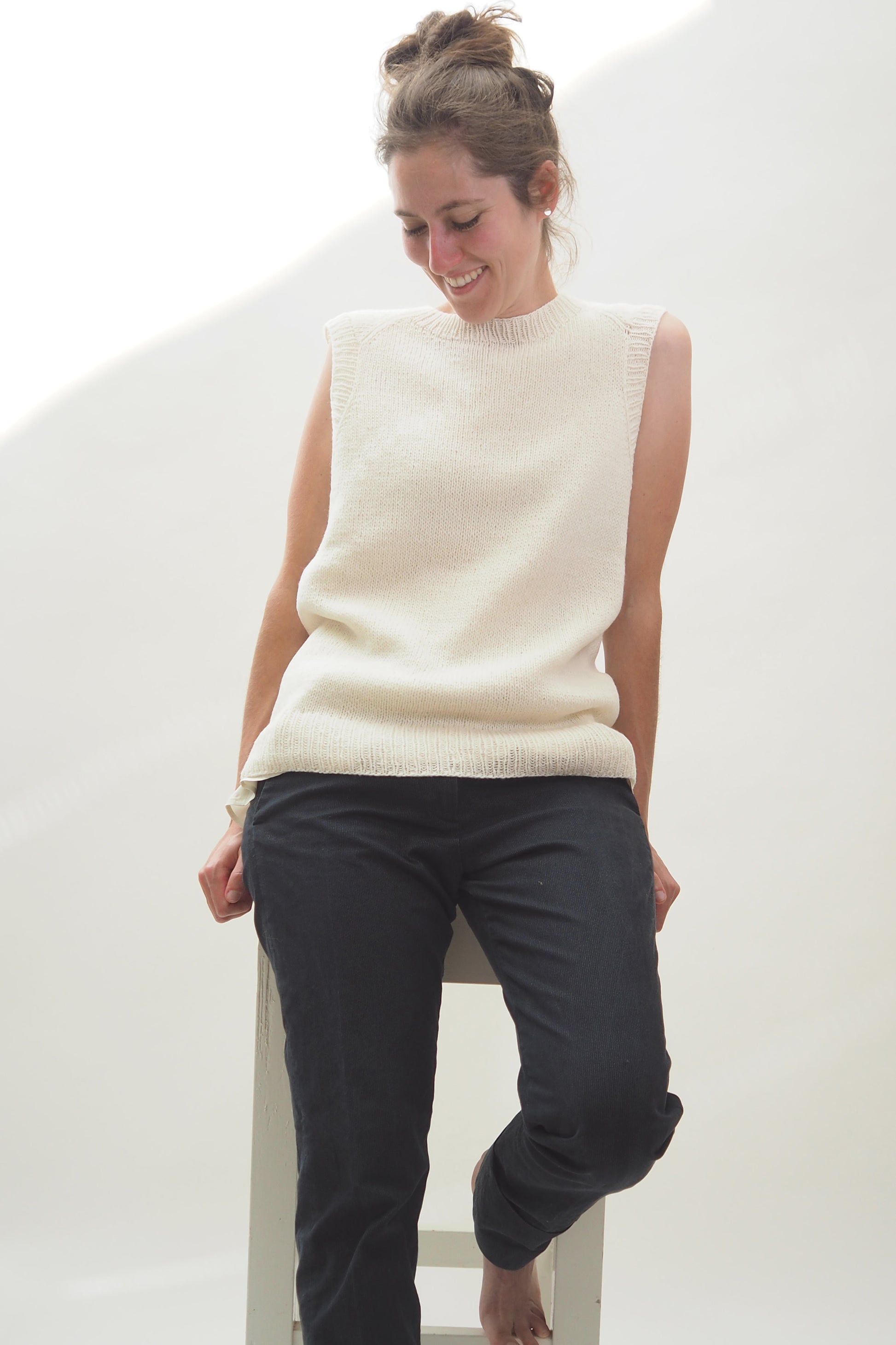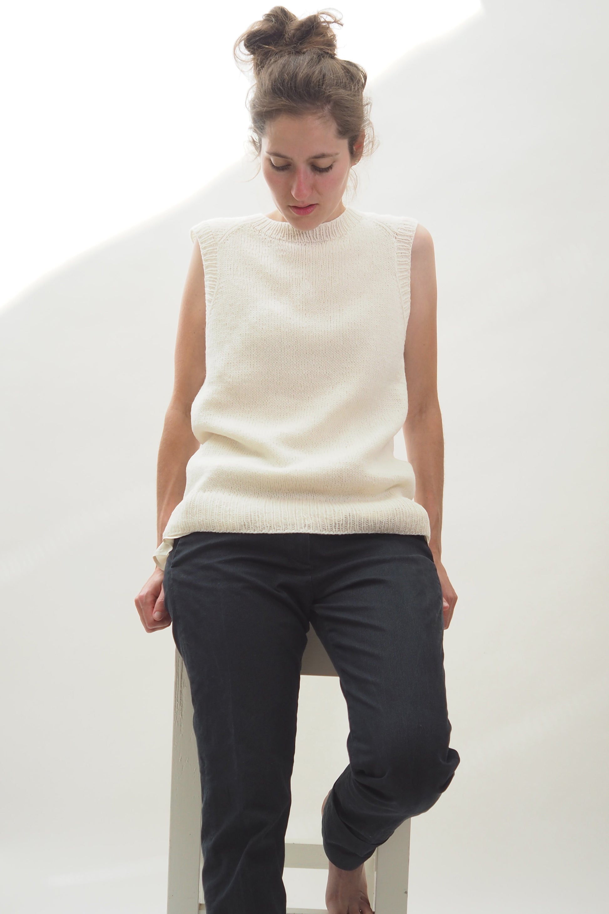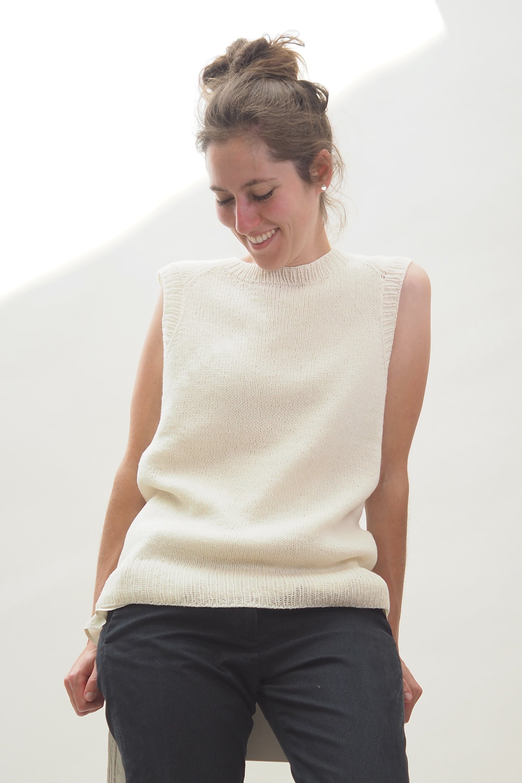 AGNES TOP wird nahtlos von oben nach unten gestrickt, mit verkürzten Reihen zur Halsformung und Raglan-Zunahmen. Der Körper wird in einer weichen A-Linien-Form gestrickt, um eine entspannte Passform zu erreichen.