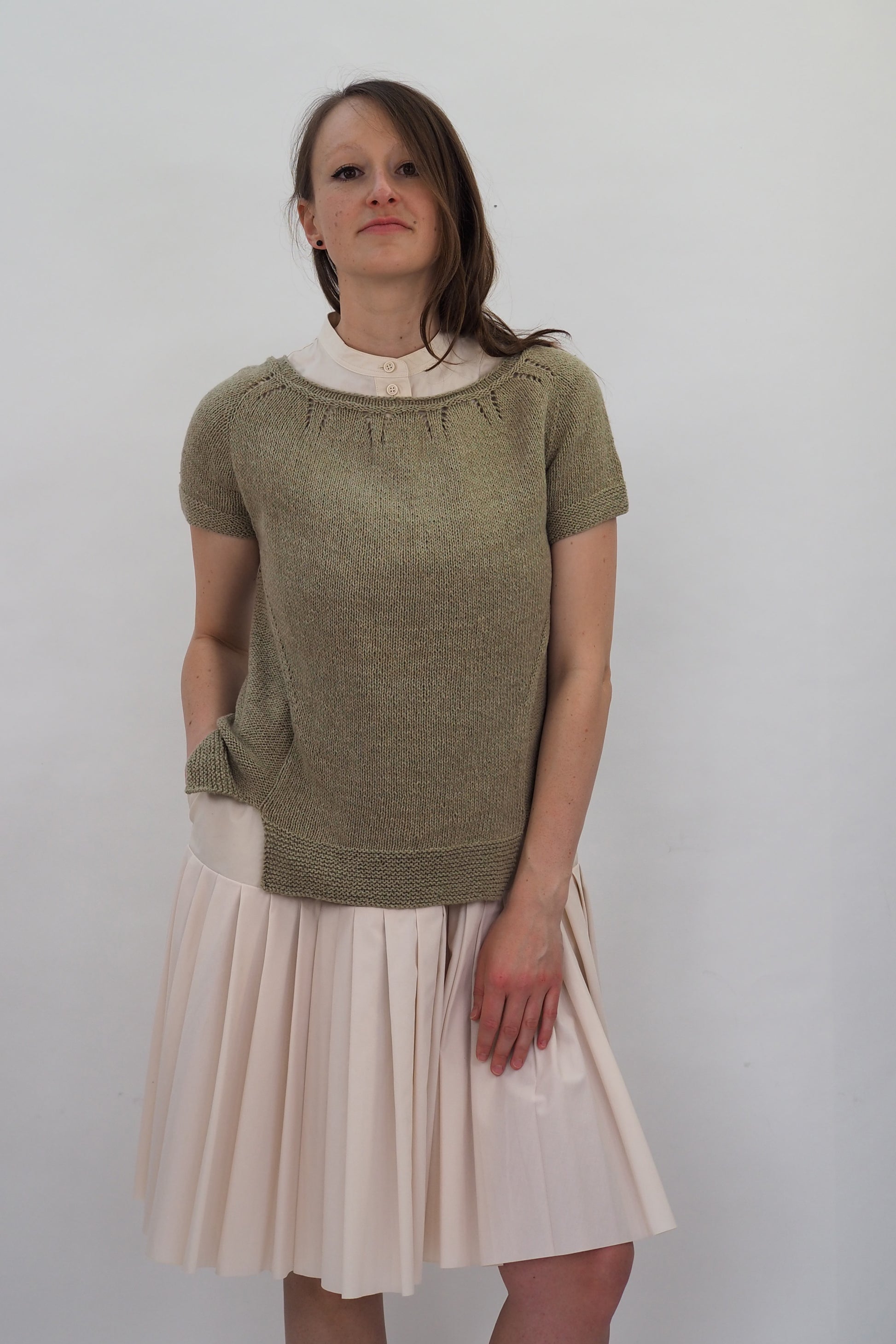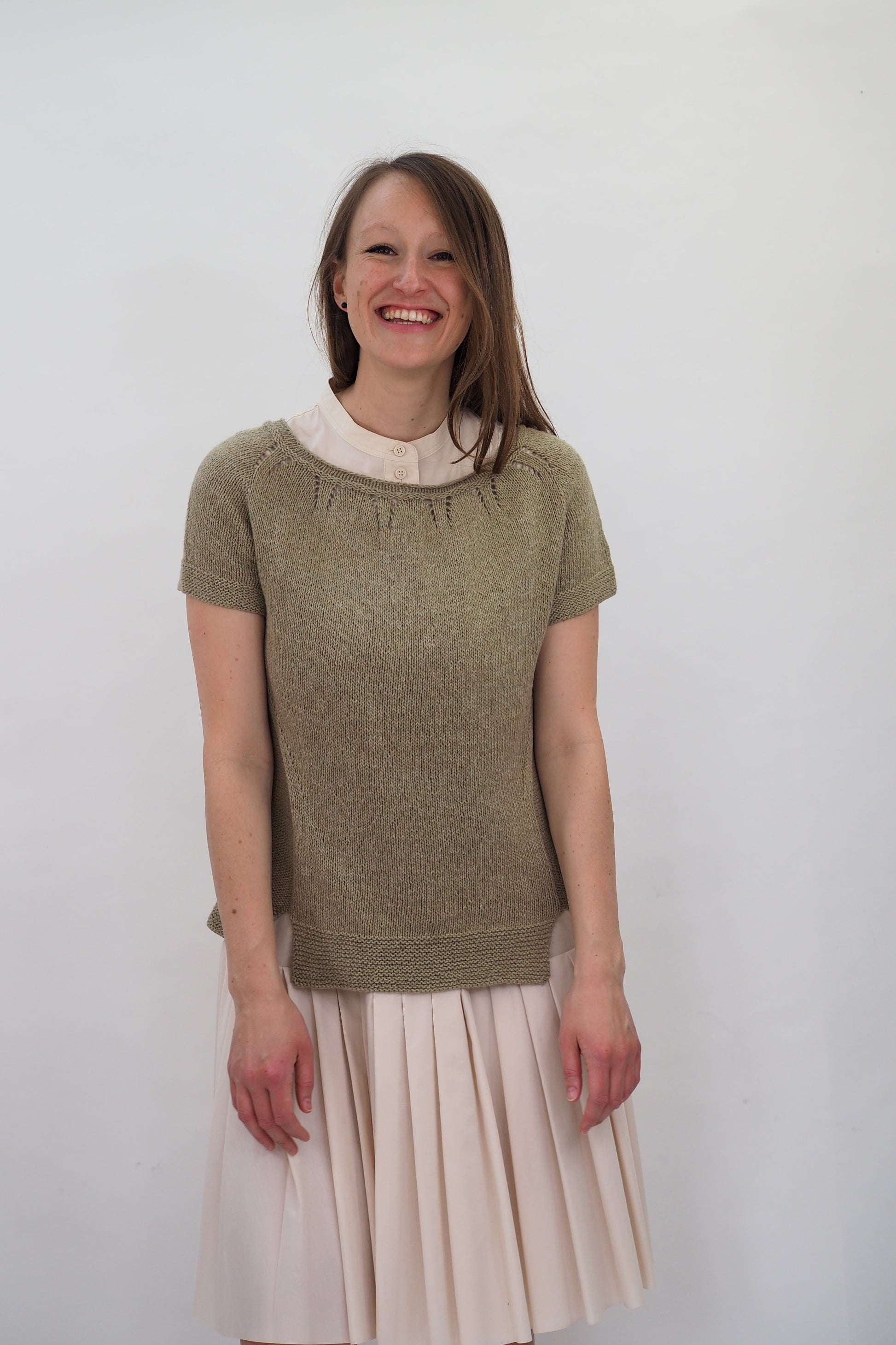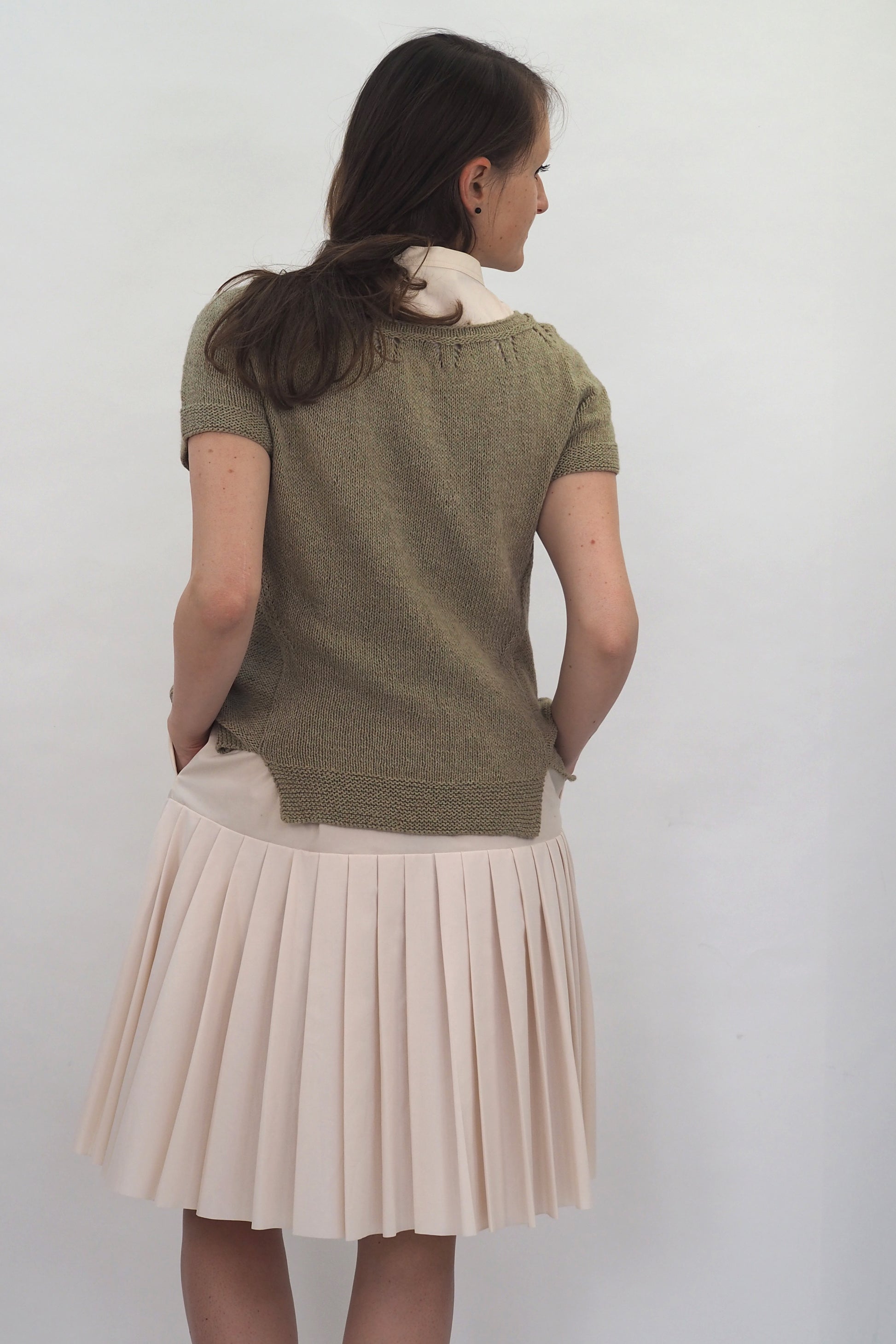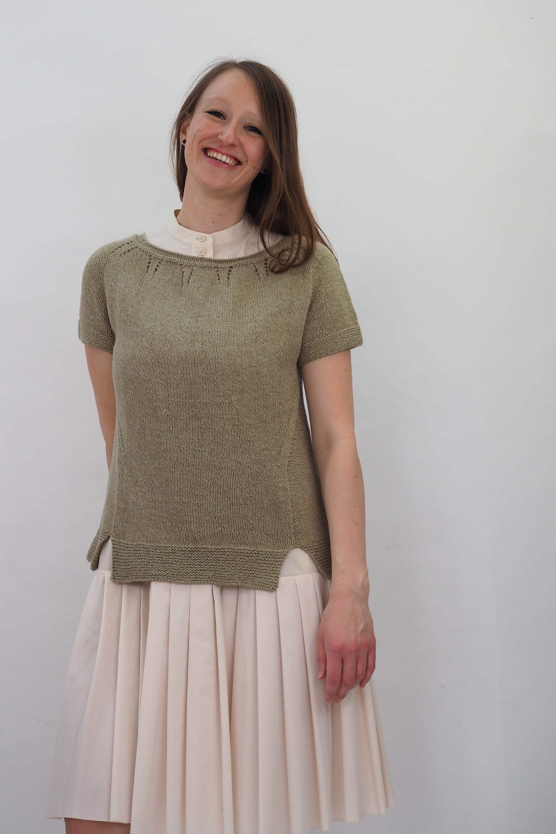 ALMA von Regina Mössme, gestrickt mit HERZFASER NO.14 in der Farbe ZEITFLUSS unserer MEISTERSTÜCKE – FARBIGE BILDER von Herzfasern – exklusiv bei Herr U am Amalienpark.
