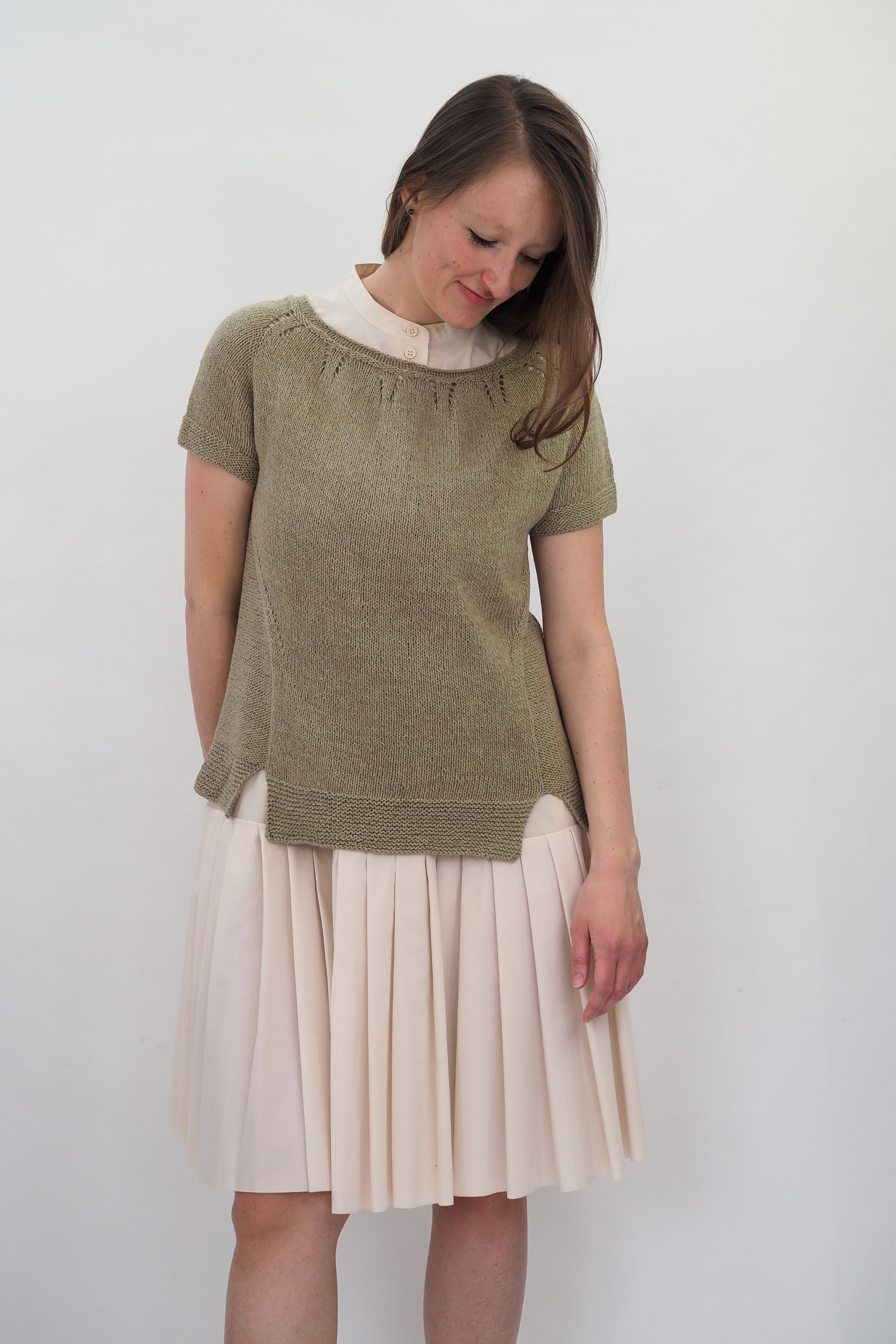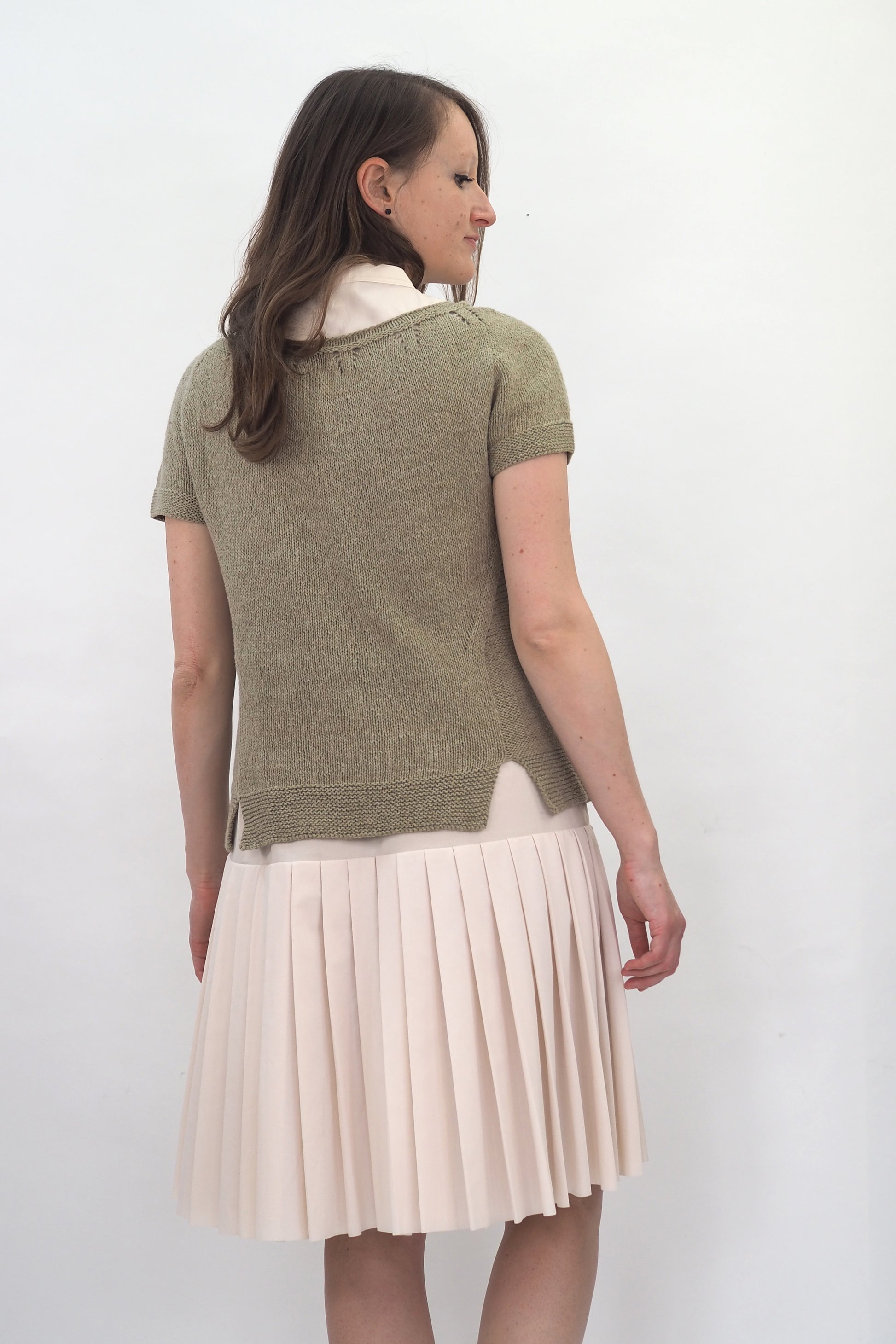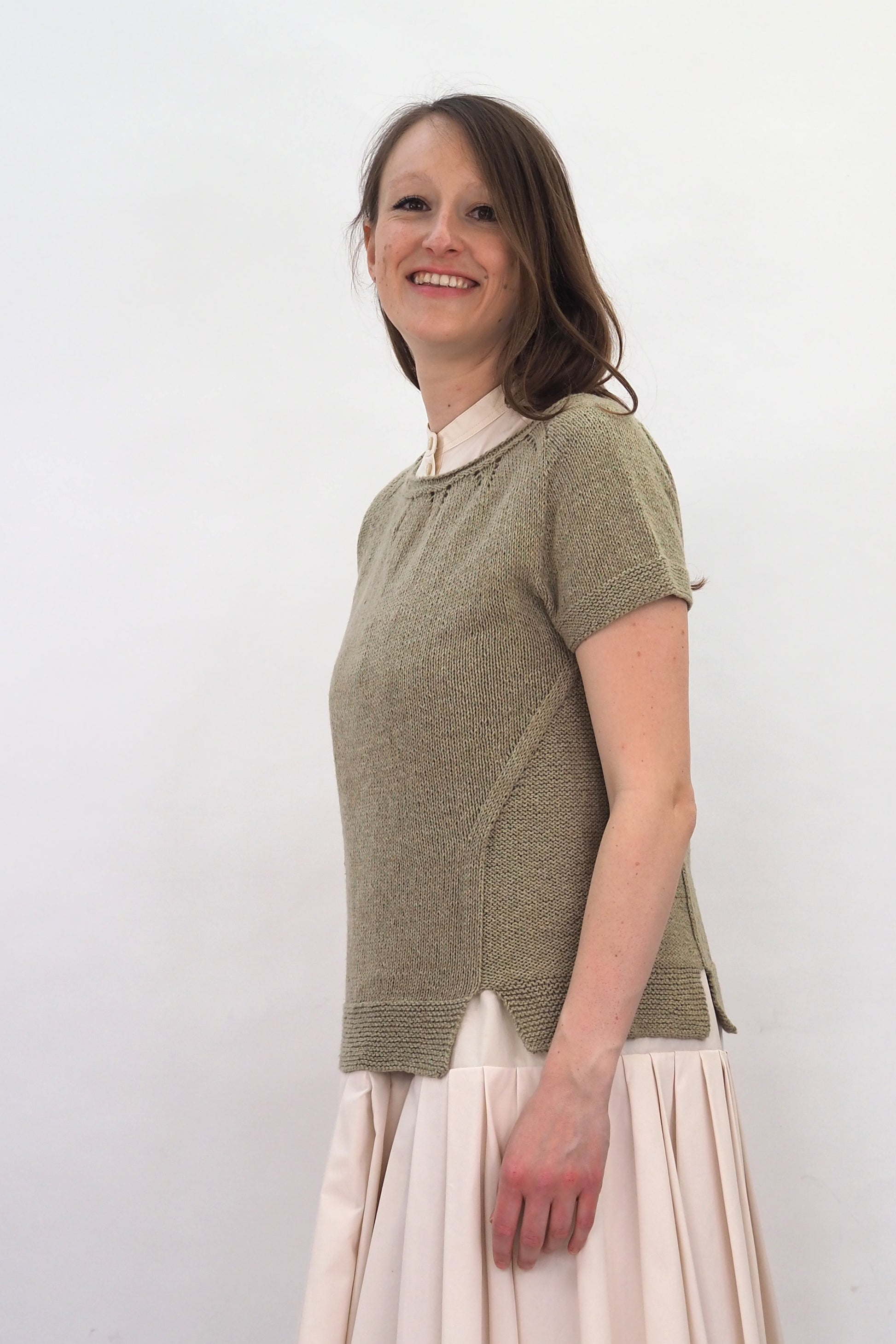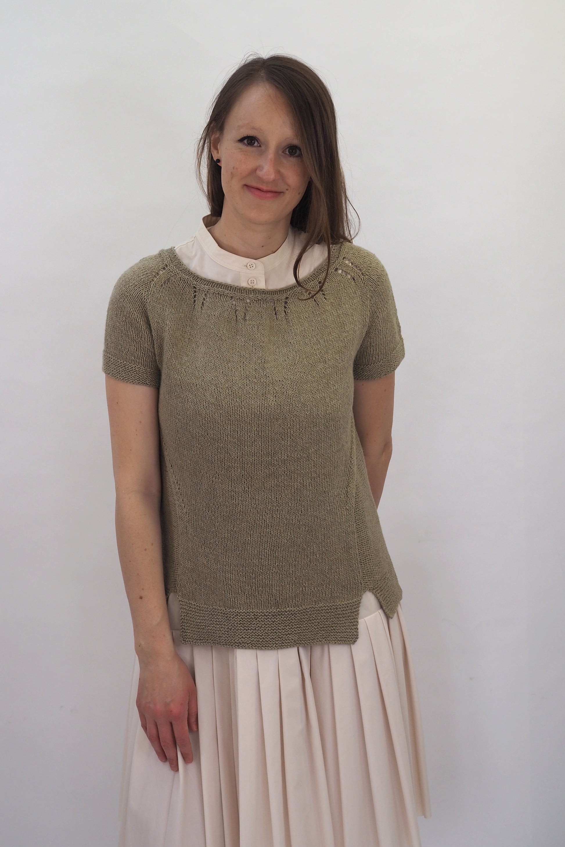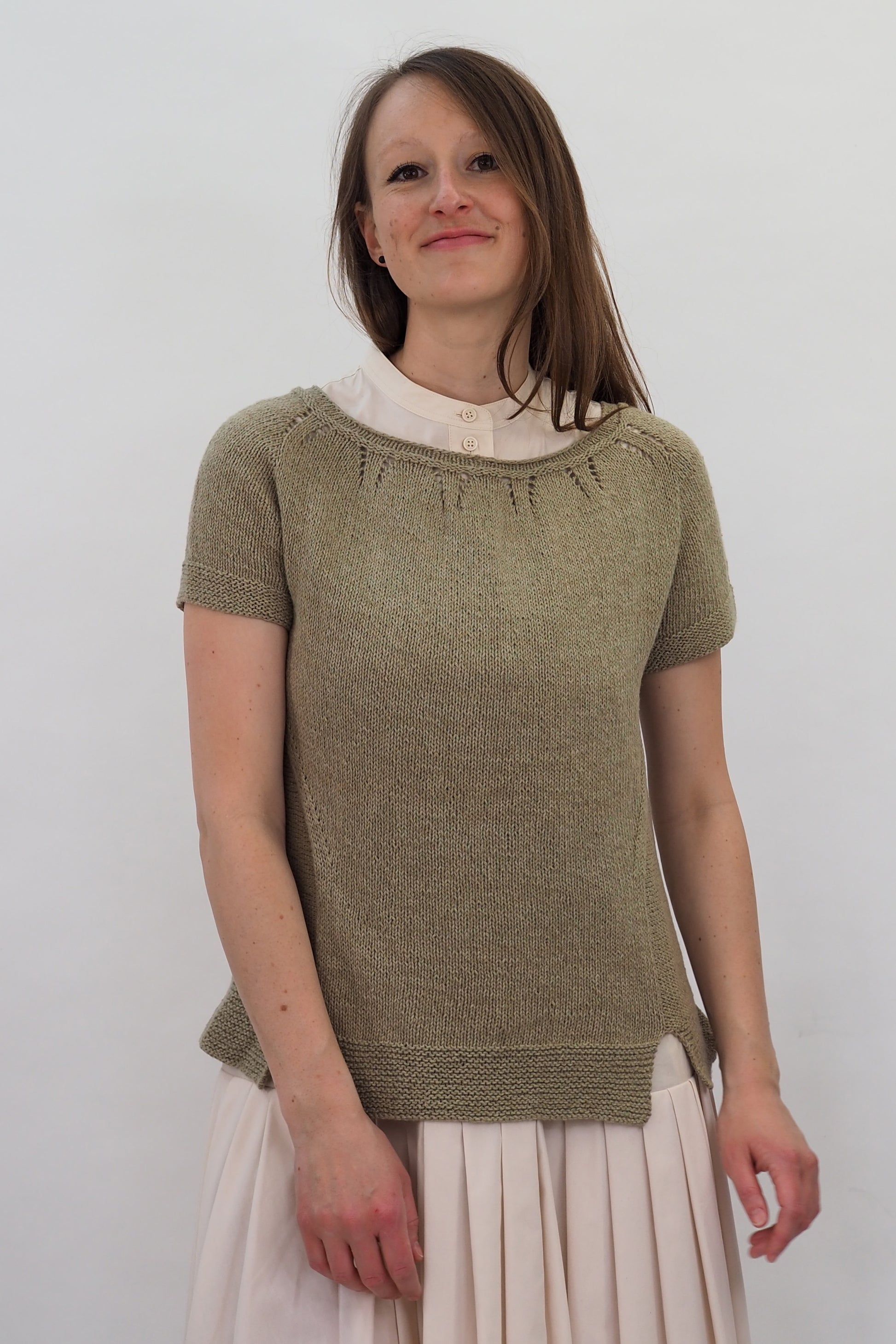 ALMA von Regina Mössme, gestrickt mit HERZFASER NO.14 in der Farbe ZEITFLUSS unserer MEISTERSTÜCKE – FARBIGE BILDER von Herzfasern – exklusiv bei Herr U am Amalienpark.
