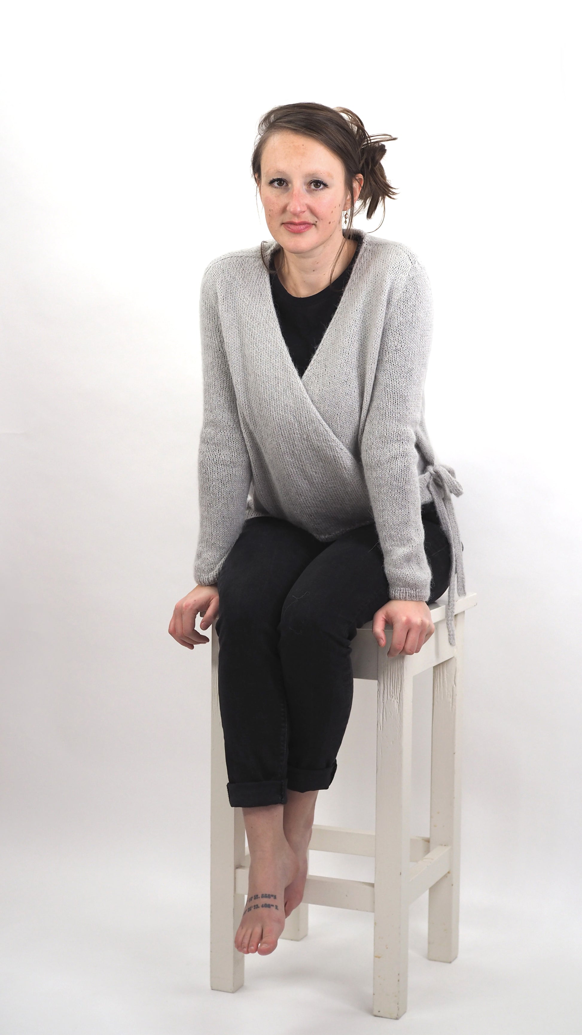 ALMA von Regina Mössme, gestrickt mit HERZFASER NO.14 in der Farbe ZEITFLUSS unserer MEISTERSTÜCKE – FARBIGE BILDER von Herzfasern – exklusiv bei Herr U am Amalienpark.