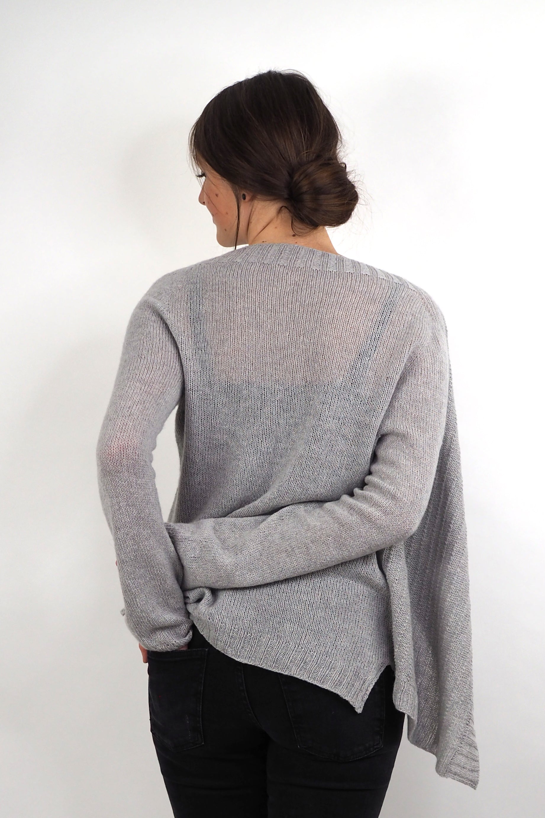 ALMA von Regina Mössme, gestrickt mit HERZFASER NO.14 in der Farbe ZEITFLUSS unserer MEISTERSTÜCKE – FARBIGE BILDER von Herzfasern – exklusiv bei Herr U am Amalienpark.