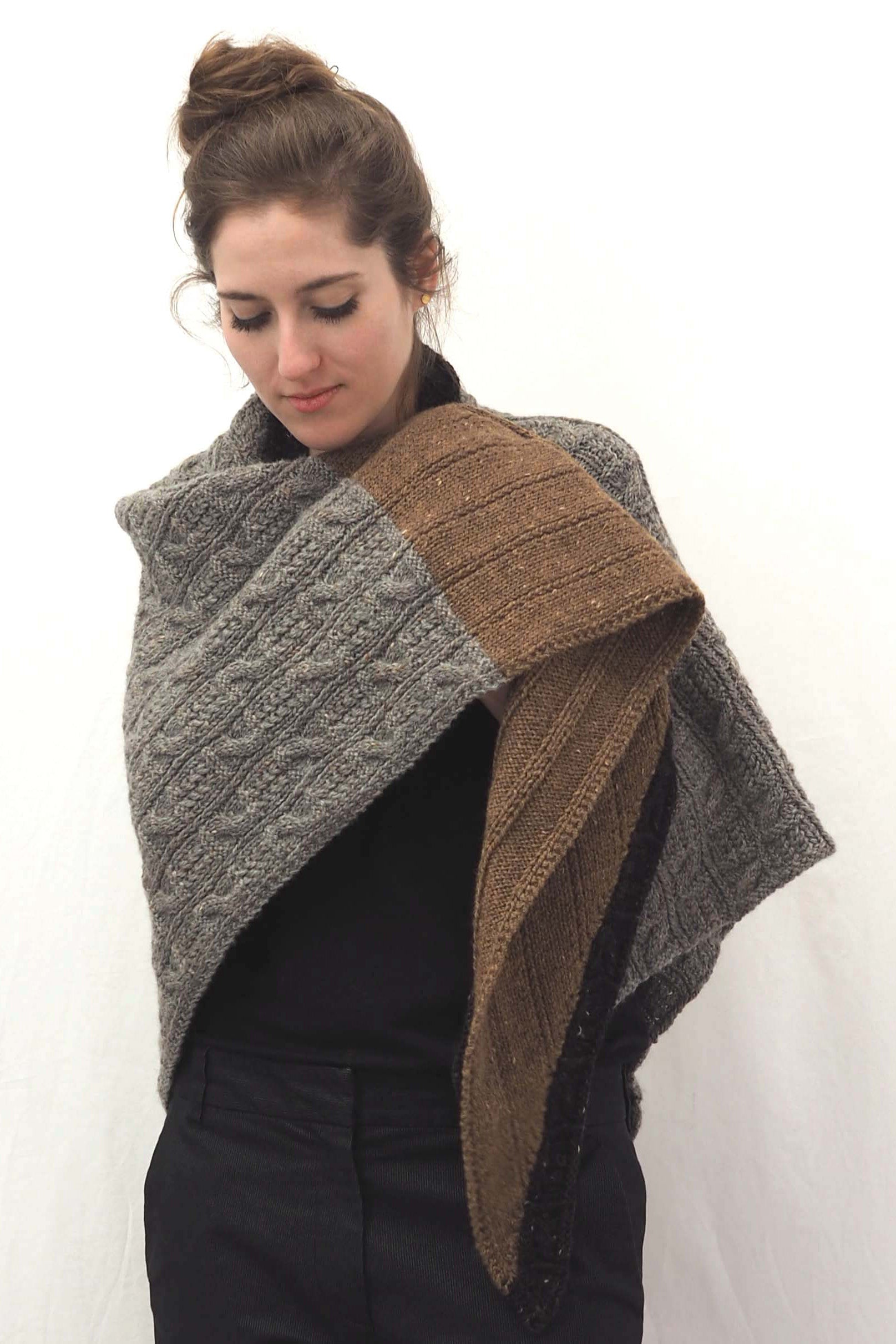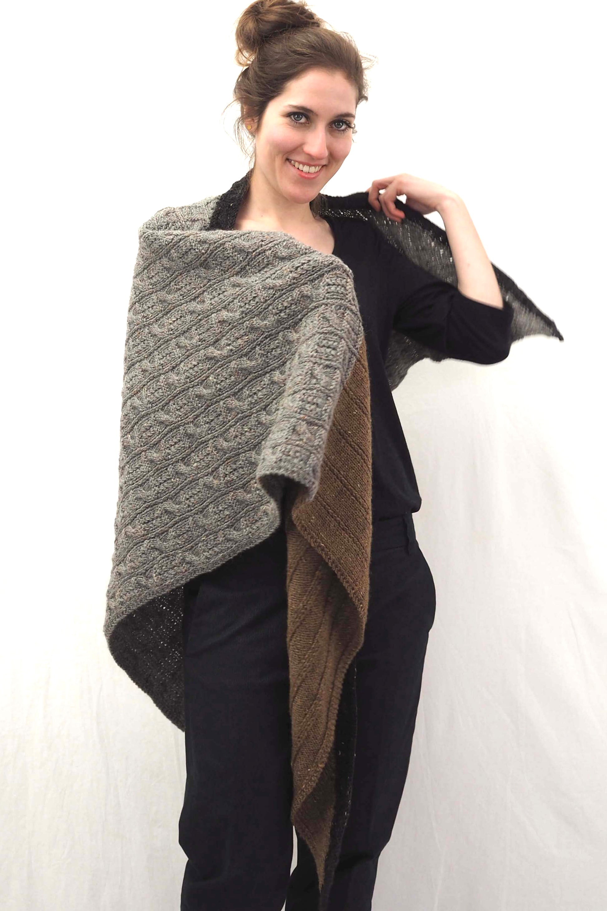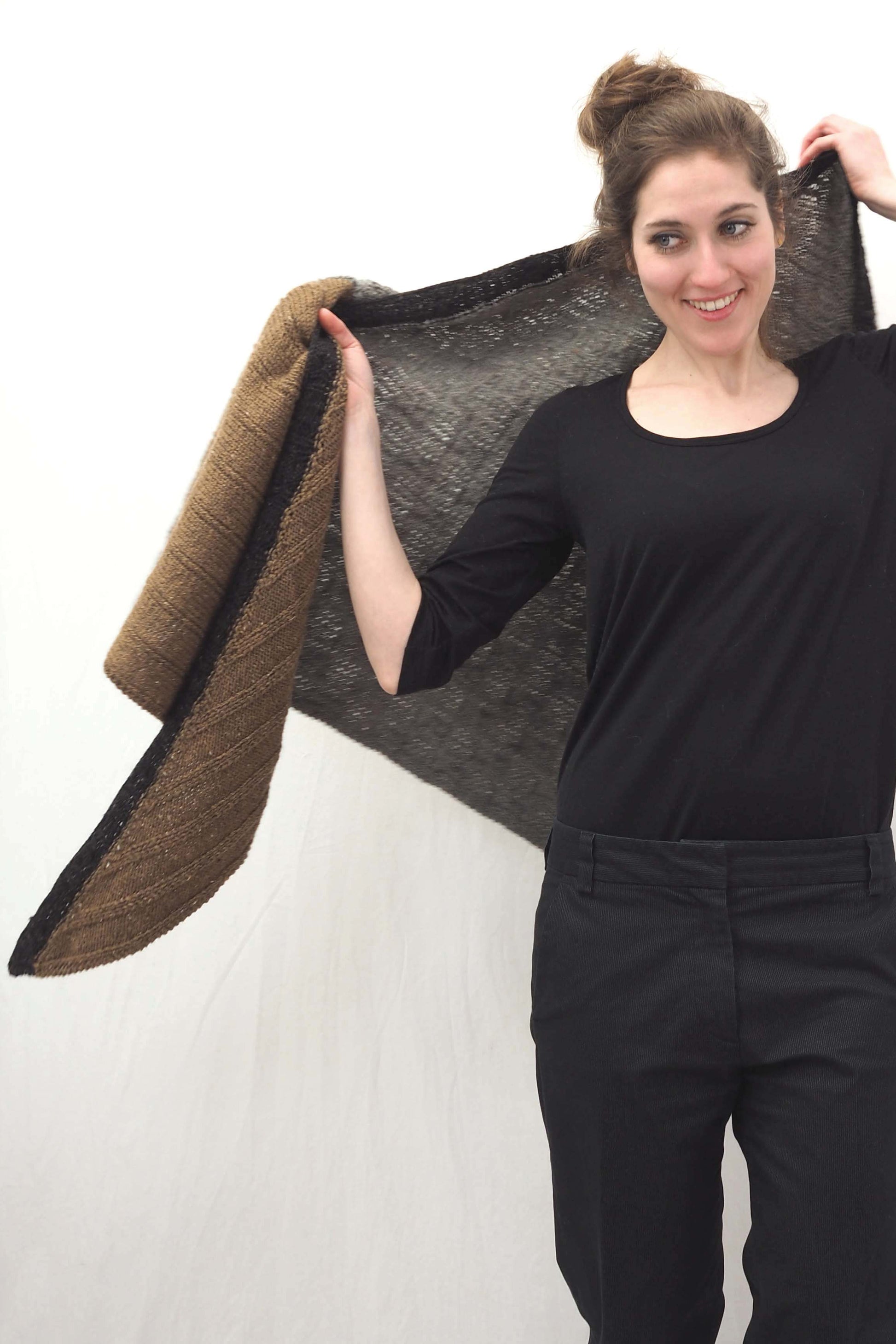 FRAMED is a large, warm and cozy triangle shawl, worked from the cast on base to the tip. For the diagonal edge, the stitches are decreased by german short rows. At the end the double stitches are used for the edge.