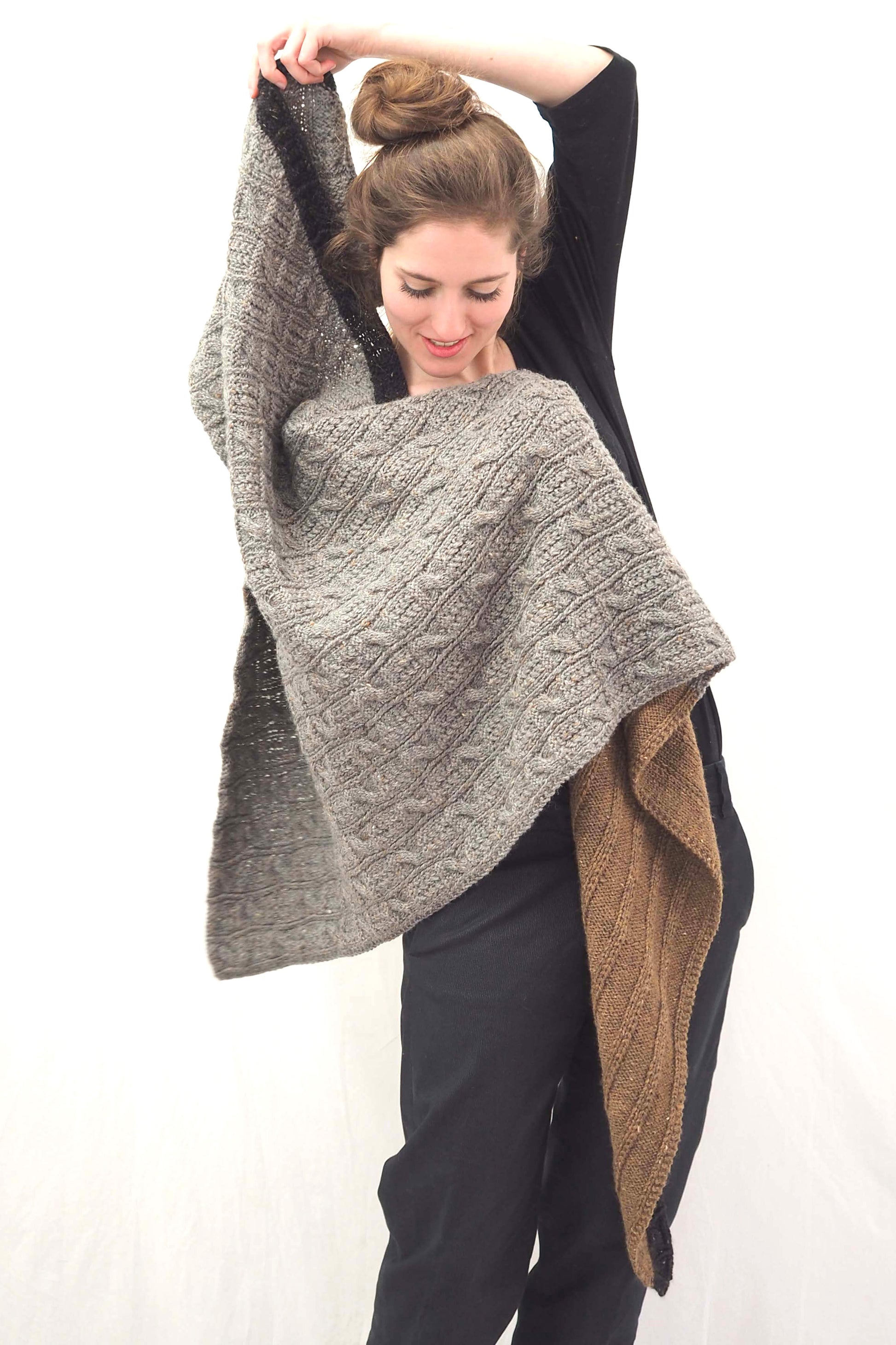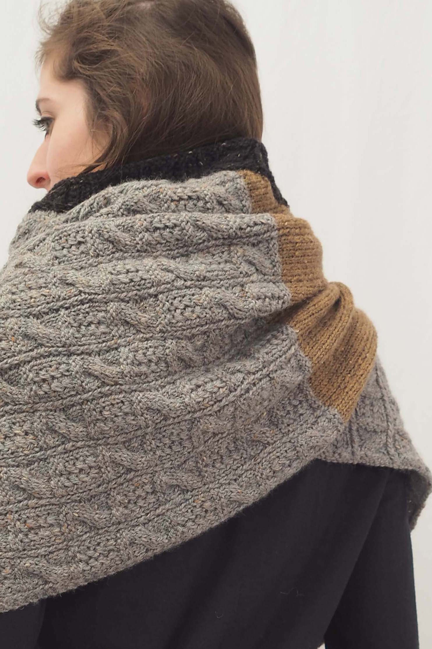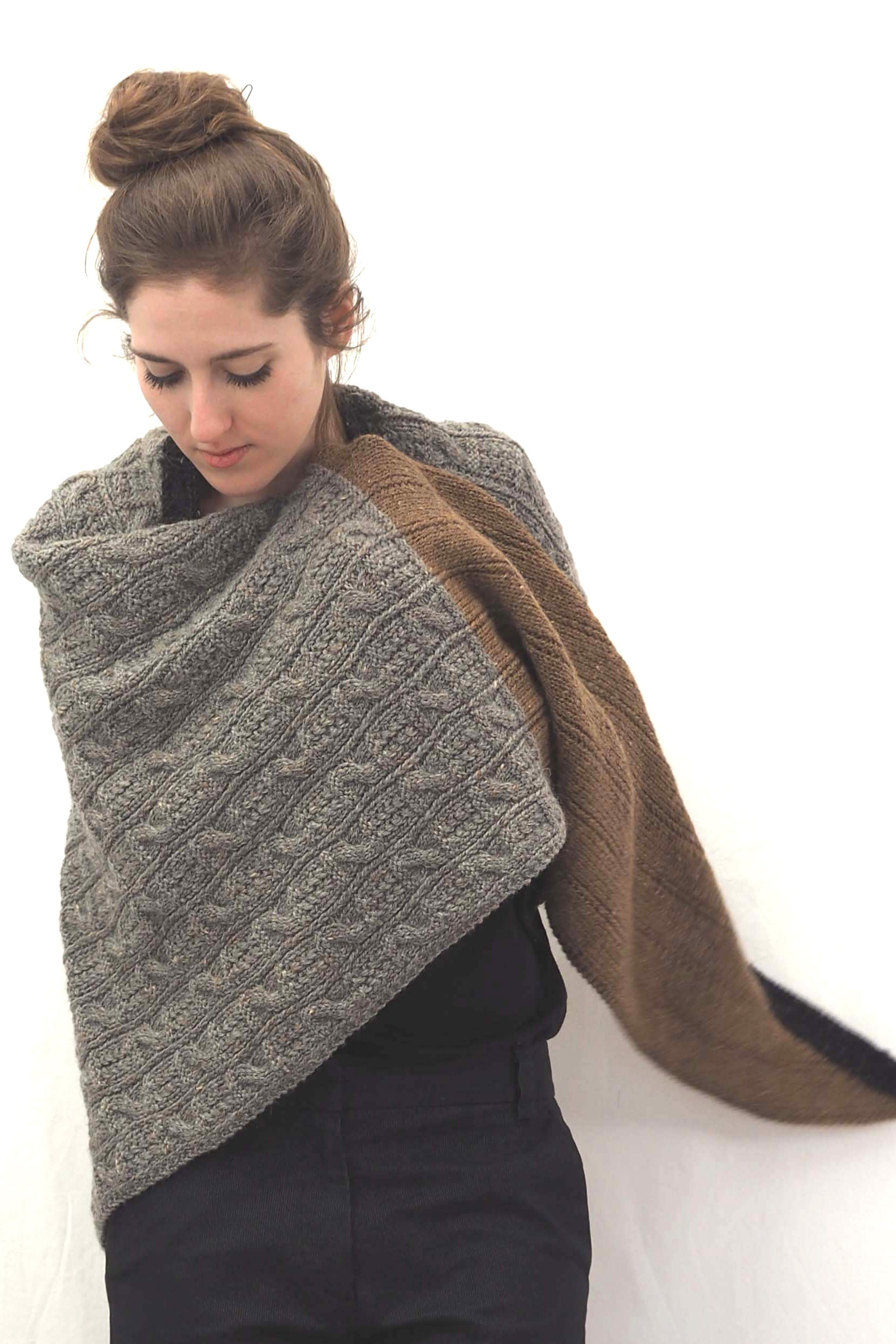 FRAMED is a large, warm and cozy triangle shawl, worked from the cast on base to the tip. For the diagonal edge, the stitches are decreased by german short rows. At the end the double stitches are used for the edge.