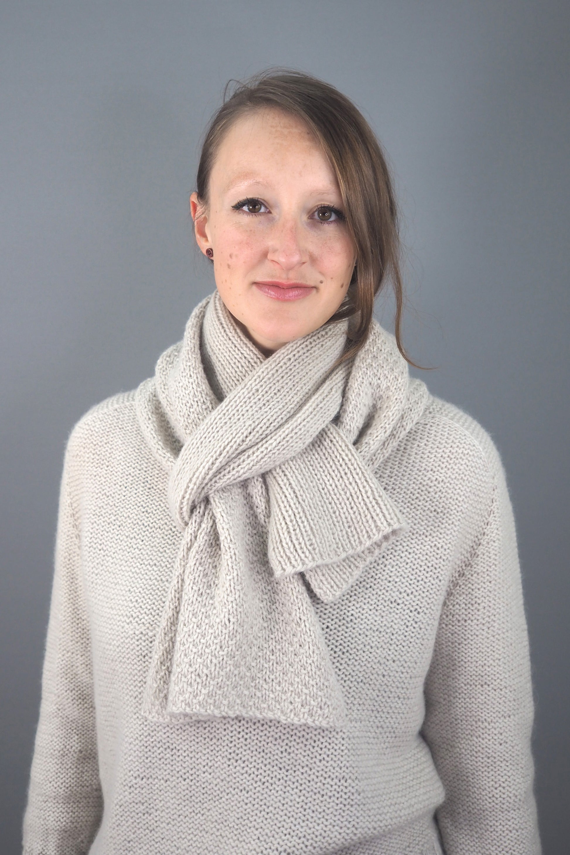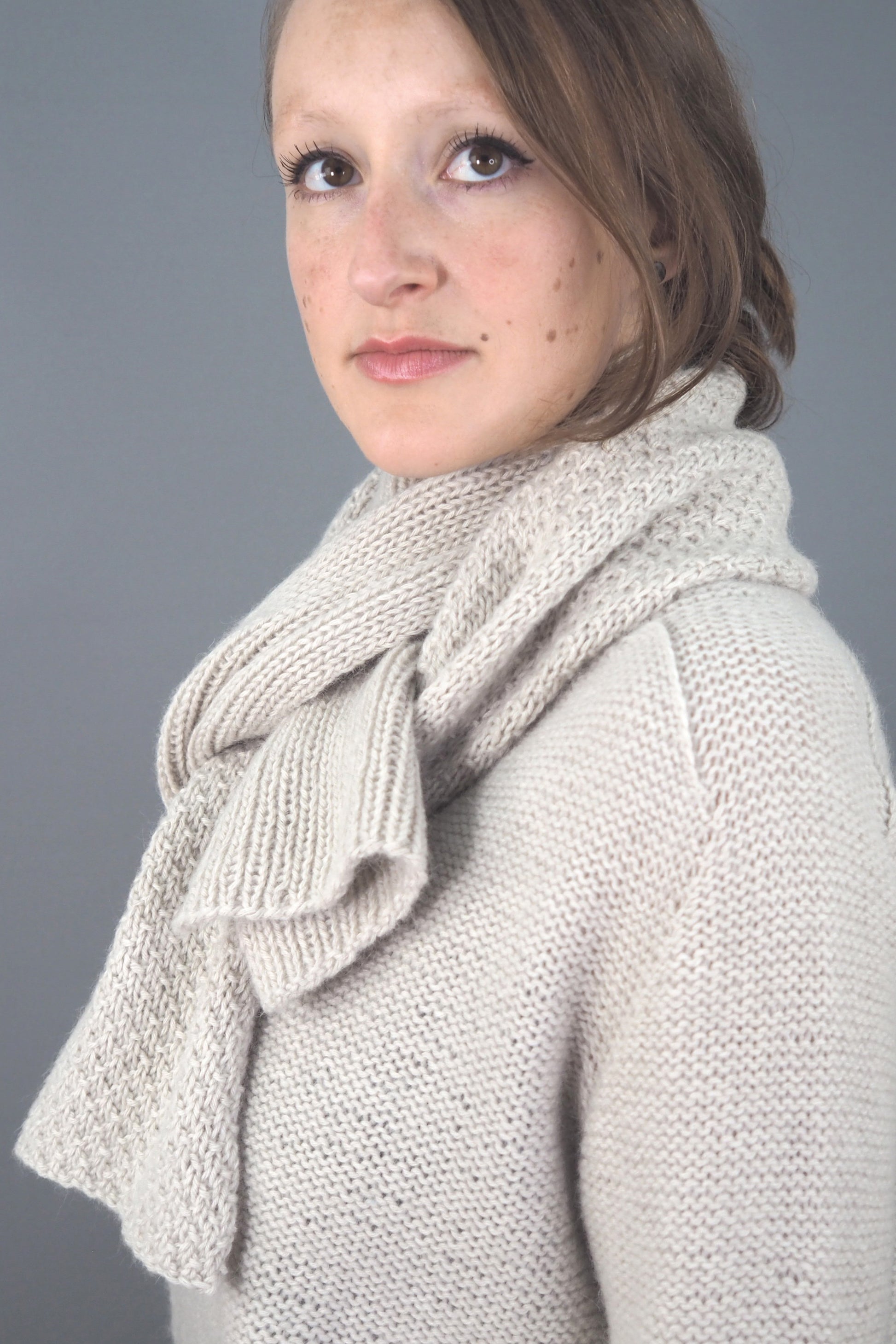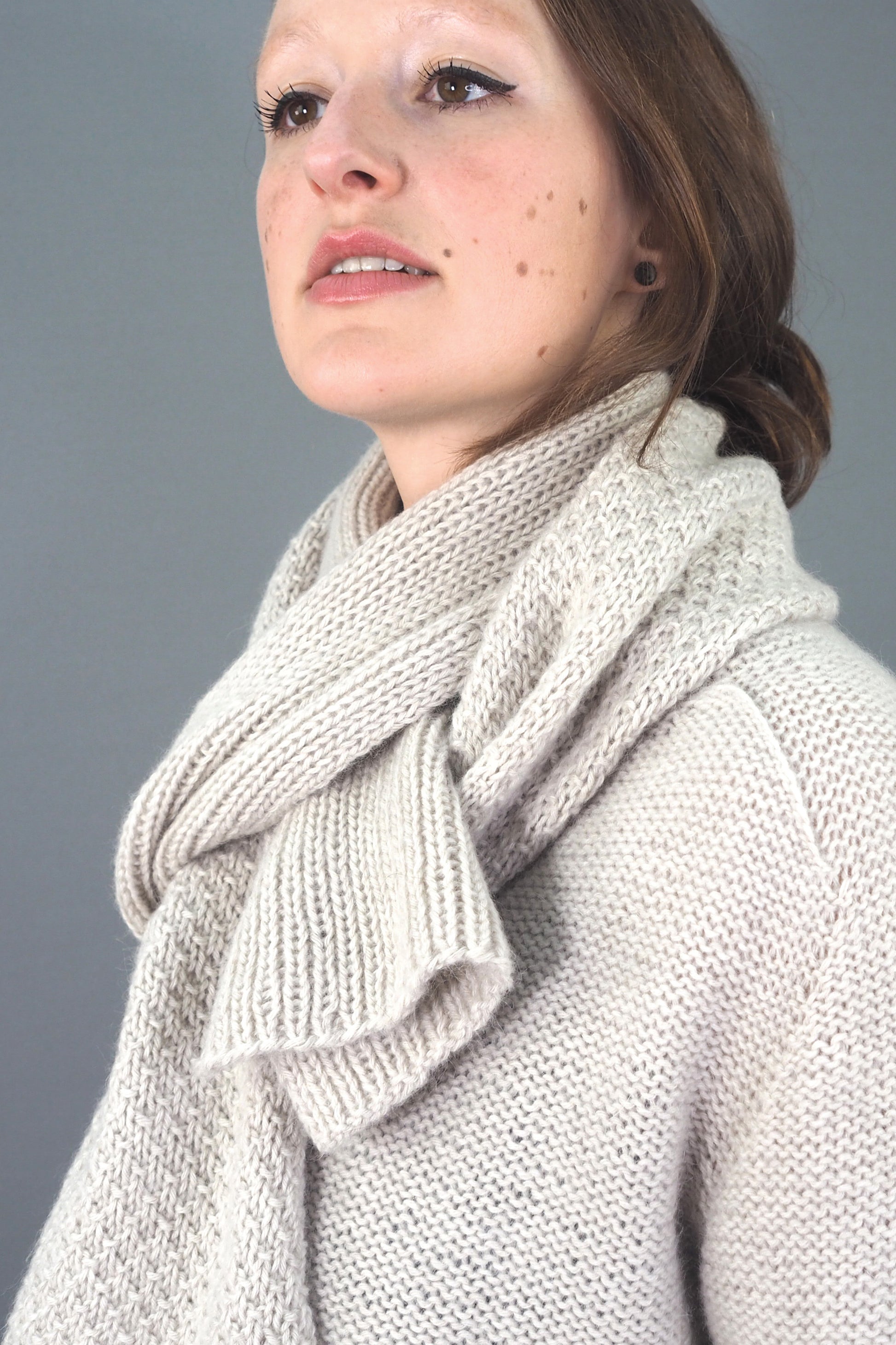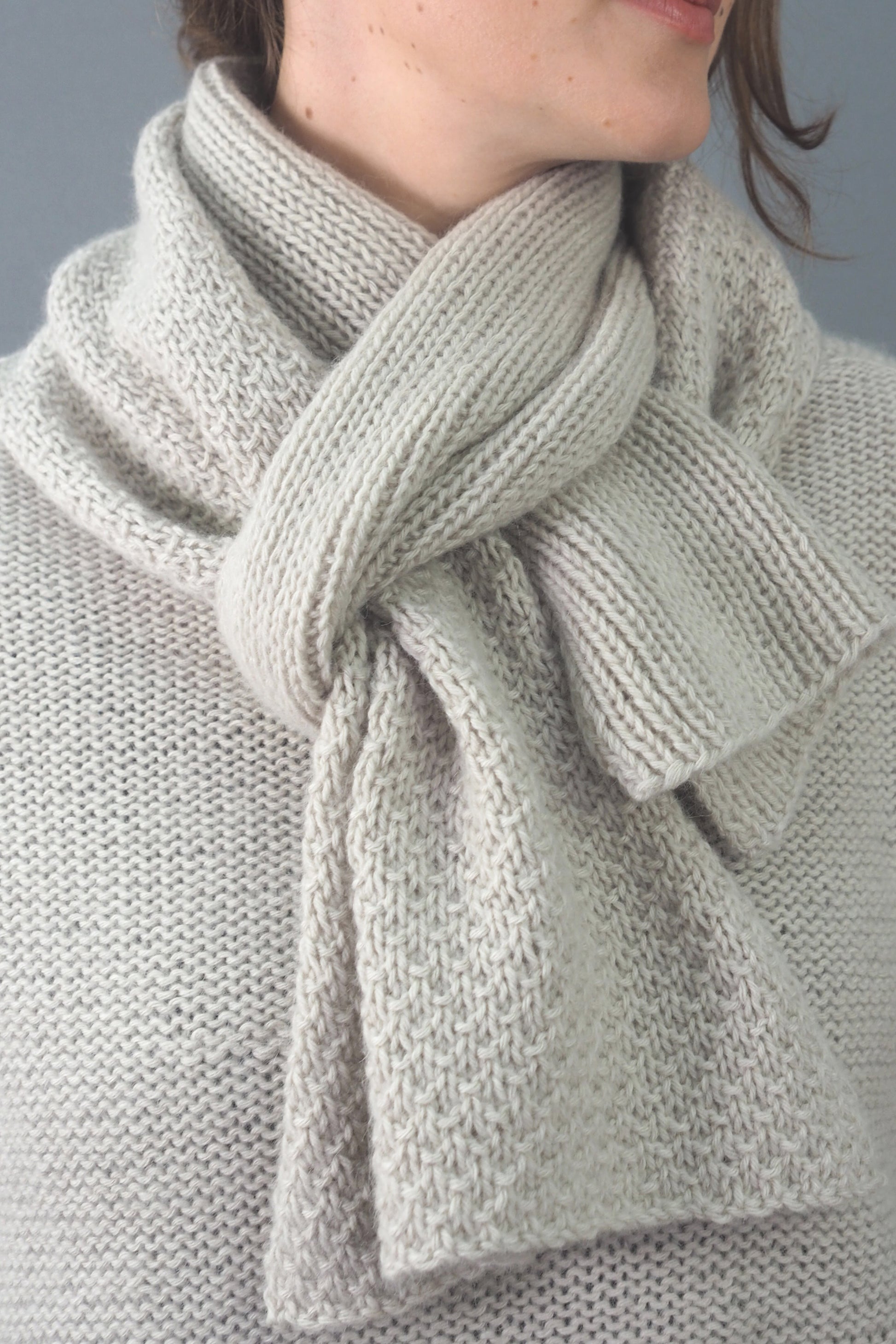 Unser ISLAY-Schal mit weicher Rippenstruktur aus superleichter LAMANA Bergamo,(Merino Superfine und Baby-Alpaka) hat die perfekte Größe, um sich in den kühleren Monaten einzukuscheln. Stricken Sie den Schal wie wir, aus demselben Garn und mit derselben Farbe wie unser MACRIE-Pullover, und wickeln Sie ihn um Ihre Schultern oder tragen Sie ihn gebunden für einen lässigen Look.