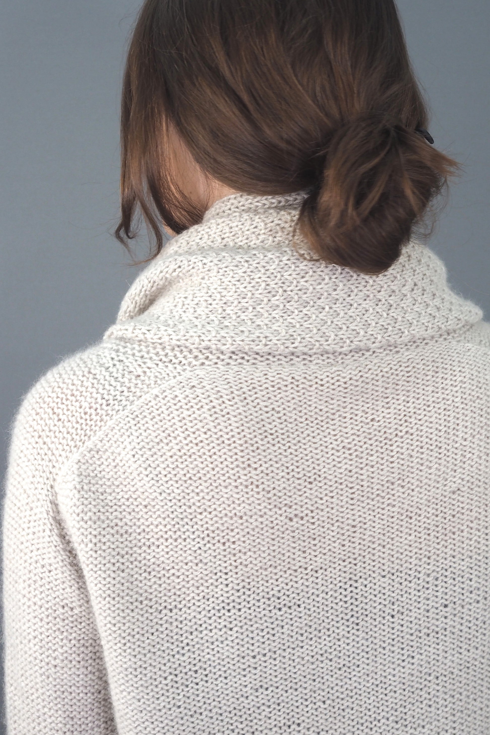 ALMA von Regina Mössme, gestrickt mit HERZFASER NO.14 in der Farbe ZEITFLUSS unserer MEISTERSTÜCKE – FARBIGE BILDER von Herzfasern – exklusiv bei Herr U am Amalienpark.