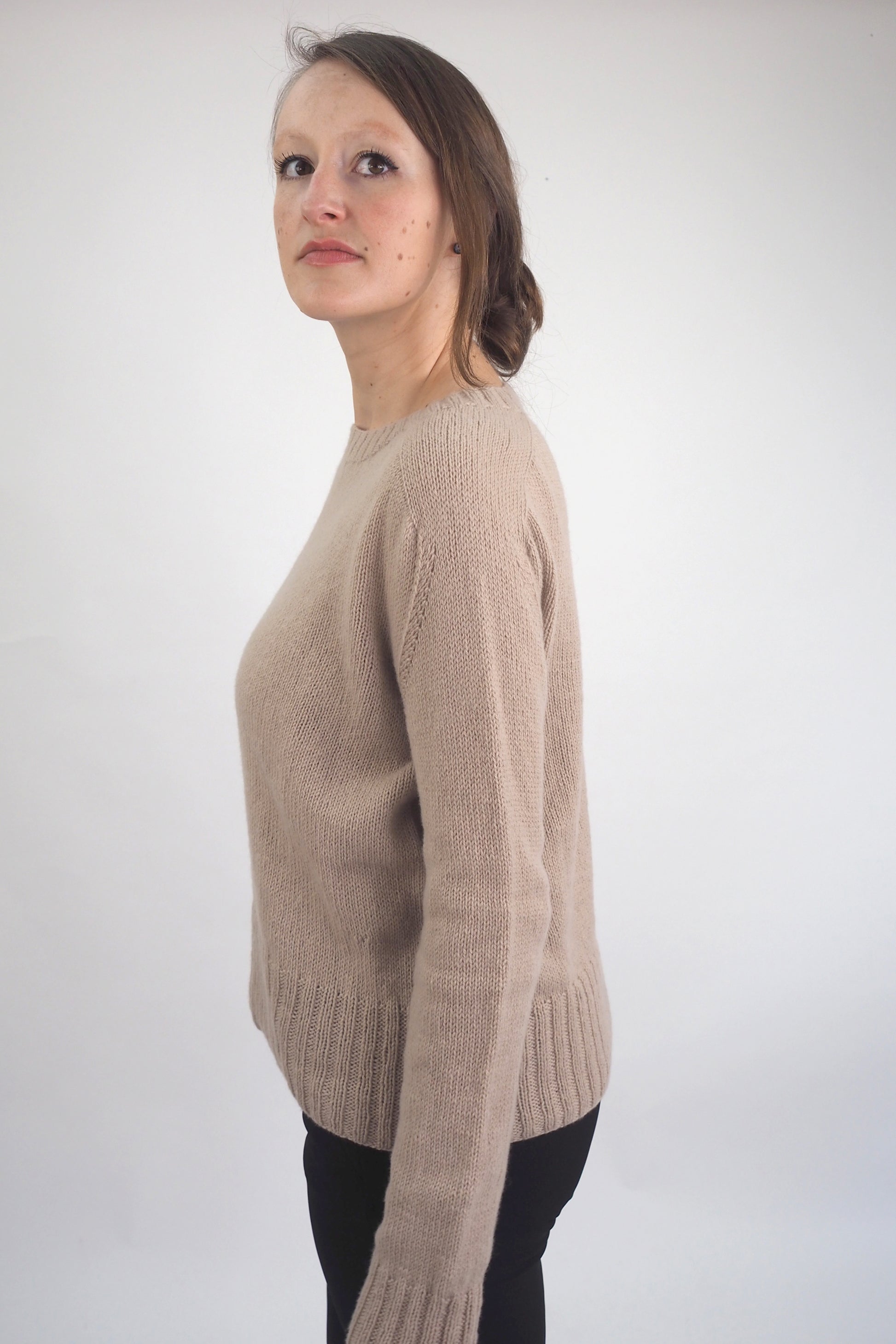 Bei den Pullovern haben wir sowohl den Raglan- als auch den Contiguous-Pullover mit modifizierten Zunahmetechniken gestrickt und dabei die Maße deutlich angepasst. Wir bieten auch verschiedene Ärmelformungsvarianten an, um die Form je nach Vorliebe zu variieren.