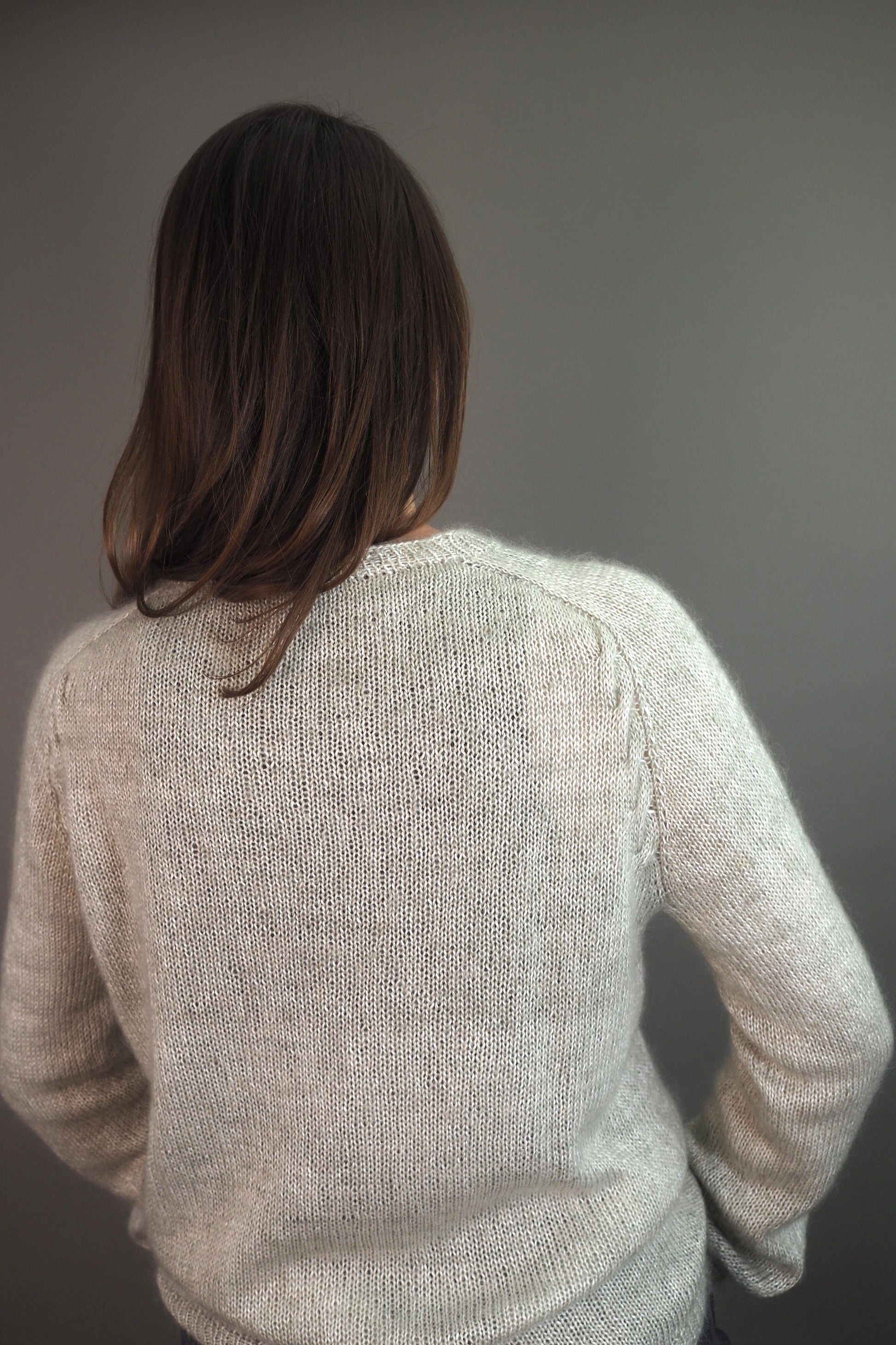 HABIBI bedeutet „Liebling“ und ist aus Herzfaserns Lieblingsgarn °50 gestrickt. Der Pullover wird nahtlos von oben bis unten gestrickt. Zu Beginn werden mit der Contiguous-Methode von Susie Myers Zunahmen für die Schulterpasse vorgenommen. Sobald die Schulterpasse fertig ist, werden geneigte Zunahmen für die Ärmel gearbeitet, sowie Zunahmen in den Zopfmustern für die Vorder- und Rückseite. Nach dem Abtrennen der Ärmel werden das untere Körperteil und die Ärmel glatt rechts gestrickt. Für den Abschluss des Halsausschnitts werden Maschen aufgenommen. Alle Maschen am Saum, an den Ärmelbündchen und am Halsausschnitt werden mit einer I-Kordel über zwei Maschen abgekettet.