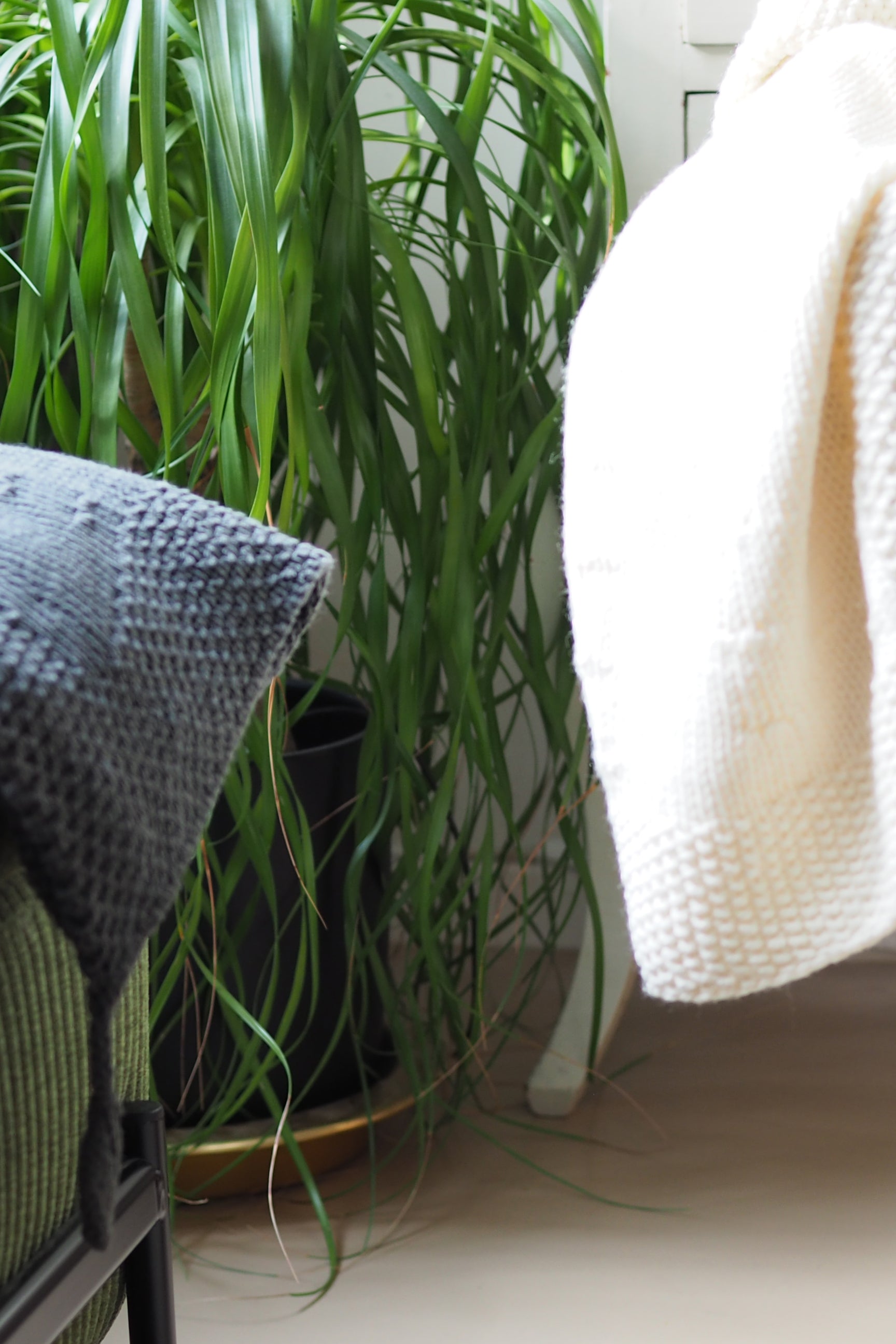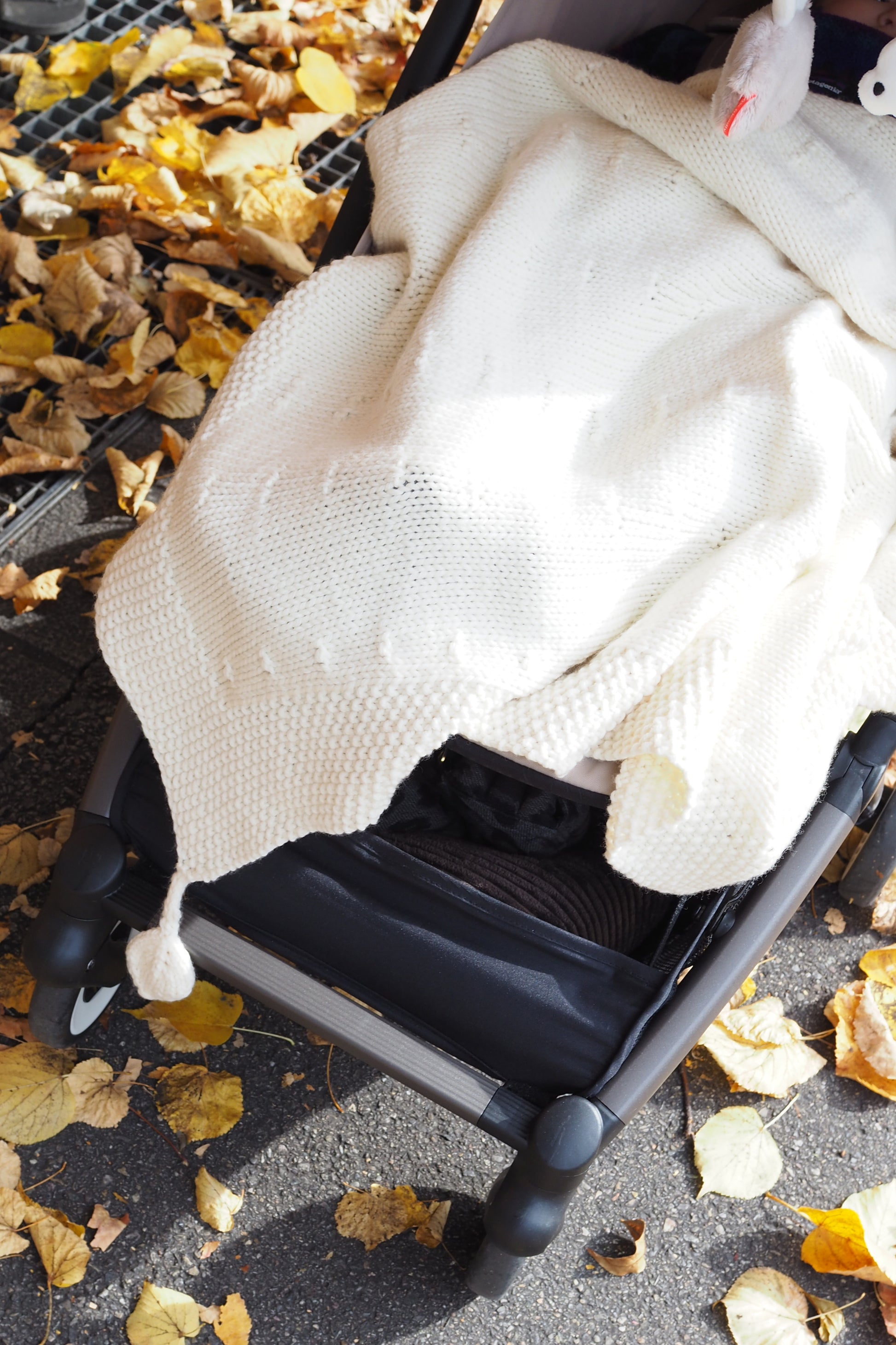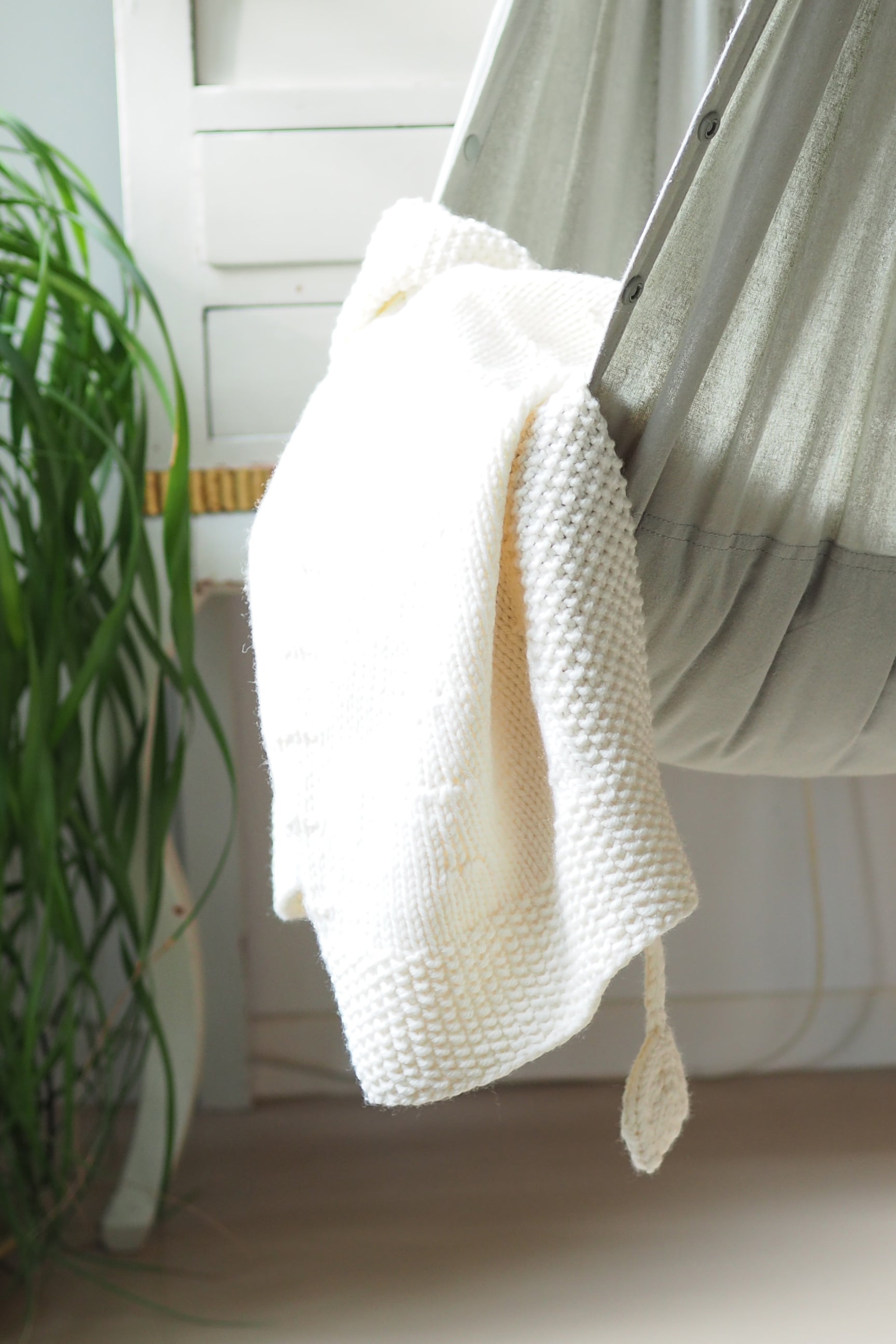 Eine weiche, schlichte Babydecke mit einem glatten, gleichmäßigen Maschenmuster. Leicht und gemütlich, perfekt für Kinderwagen, Kinderbett oder Sofa. Das Muster wirkt sanft und beruhigend und ein kleines Blättchen an der Ecke macht sie ein bisschen verspielter.