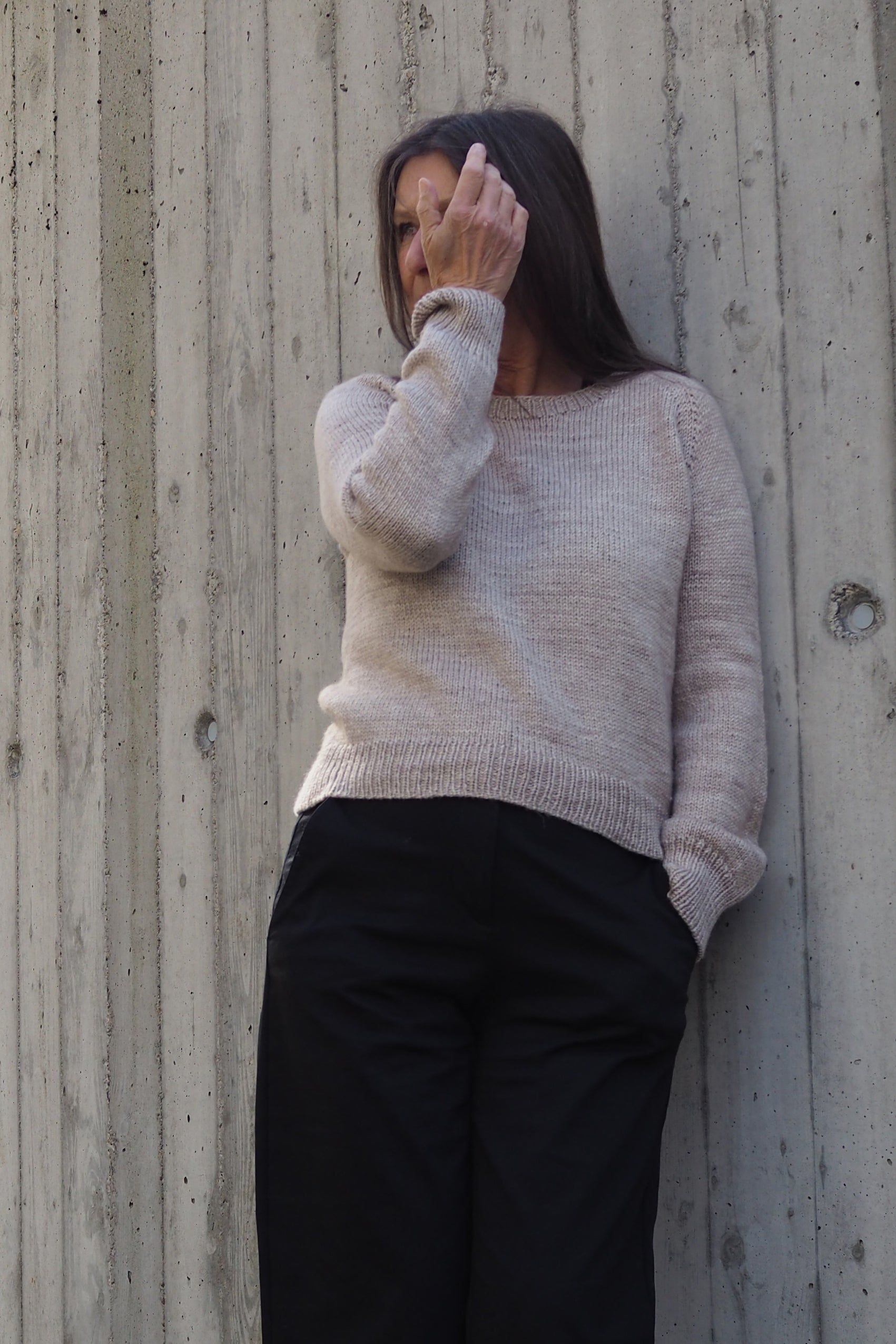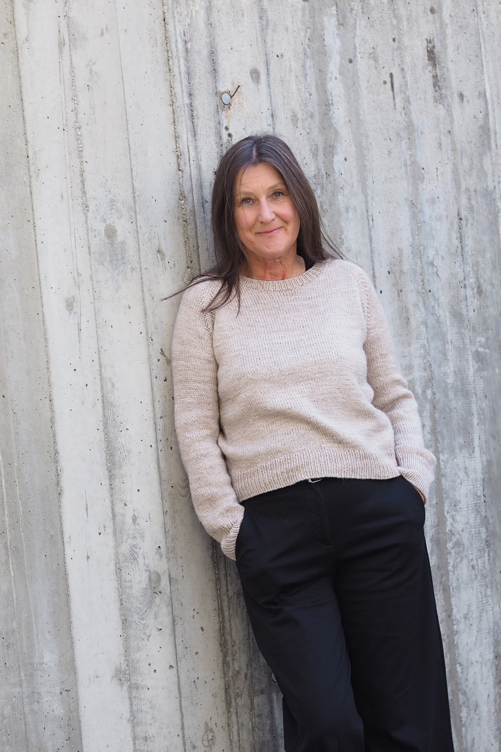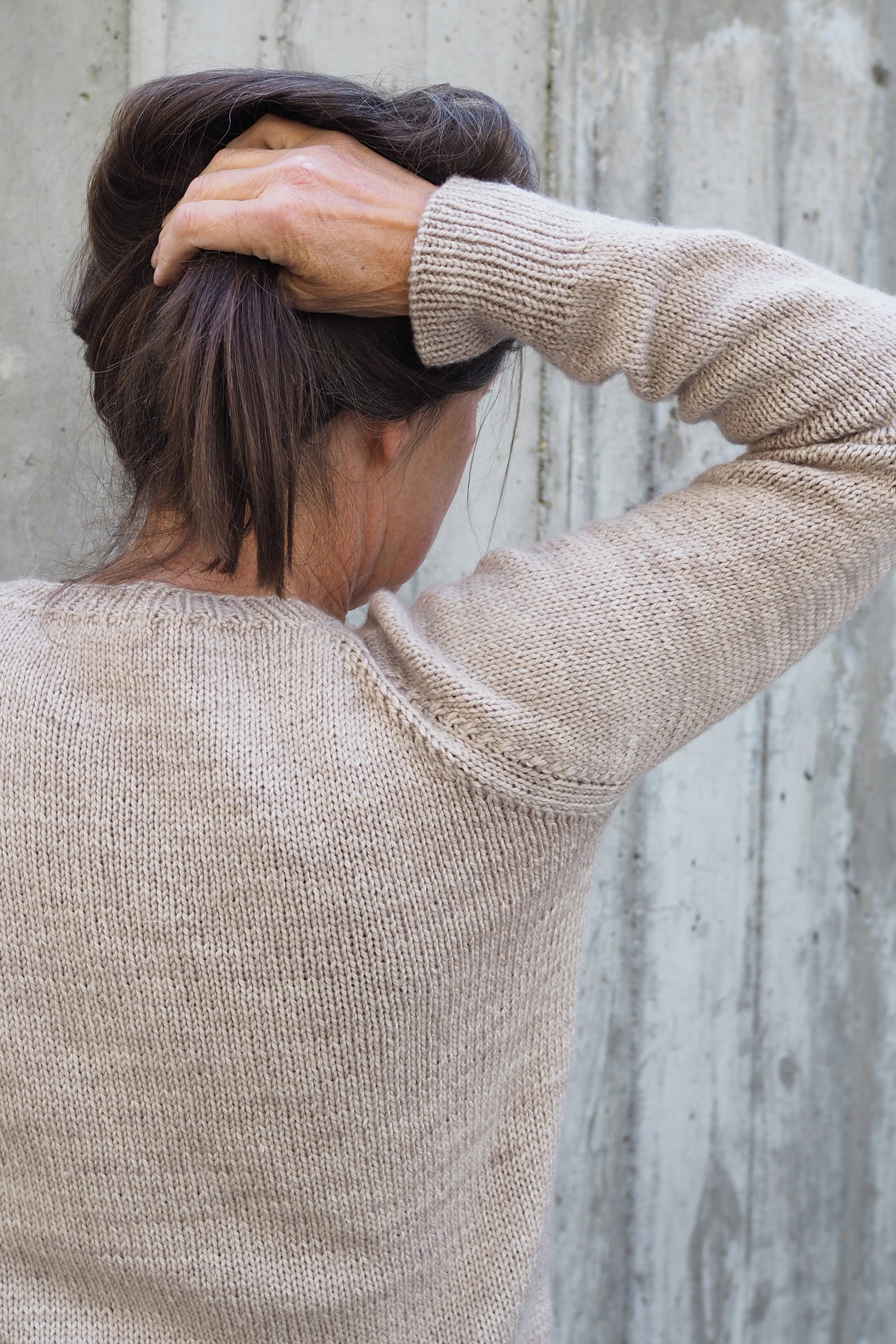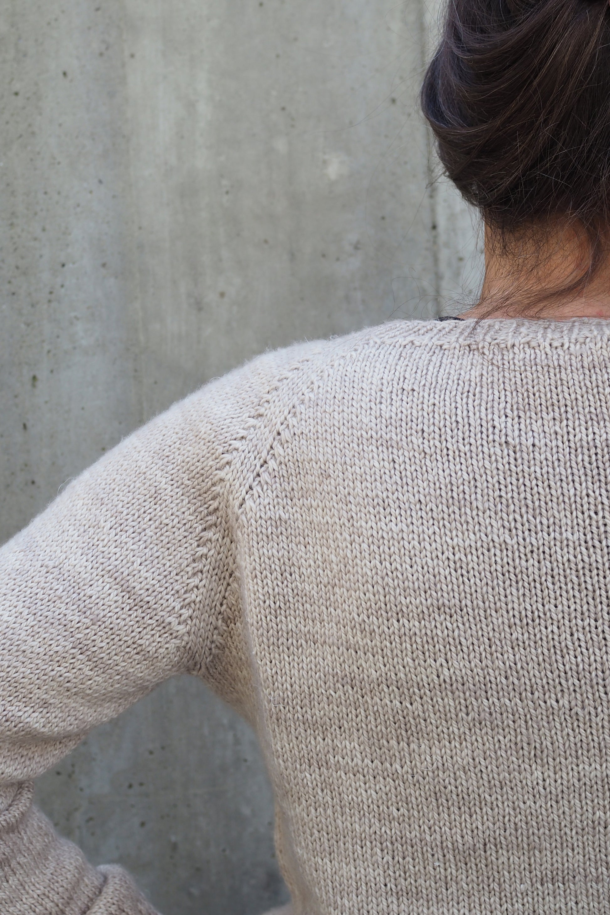 Wir haben die Raglanform mit schön sauberen LLI-Zunahmen aus verdrehten Maschen neu interpretiert, was dem Pullover einen klaren und zeitgemäßen Look verleiht. Alle Bündchen und Kanten sind in klassischem k1, p1-Rippenmuster gearbeitet, was Struktur und zeitlosen Charme verleiht. Der Halsausschnitt wird mit deutschen Kurzreihen geformt, für eine perfekte, schmeichelhafte Passform.