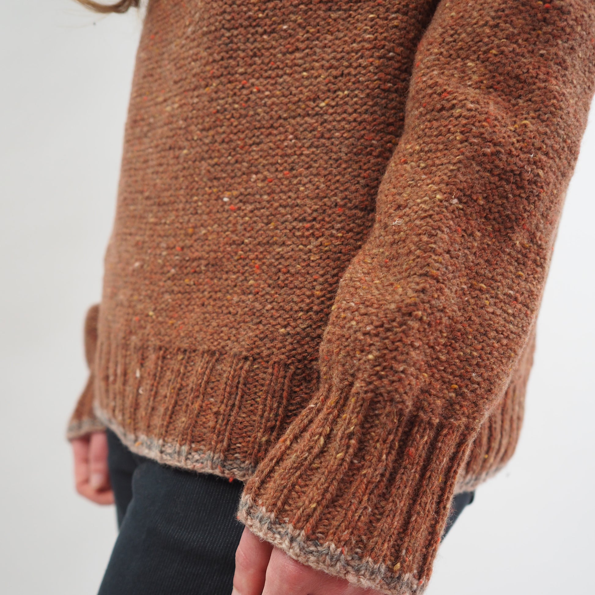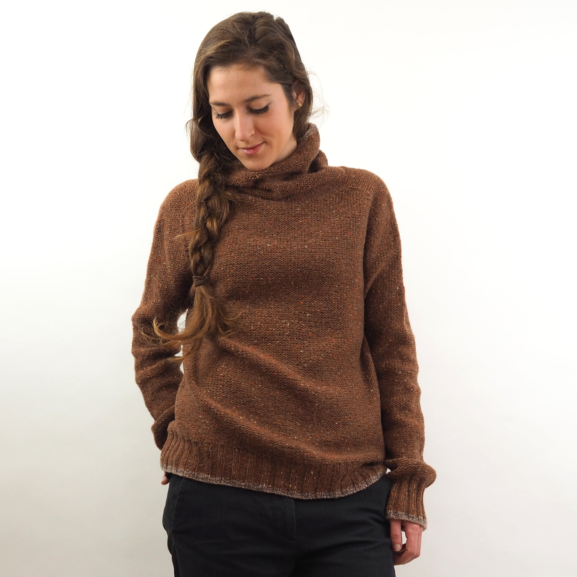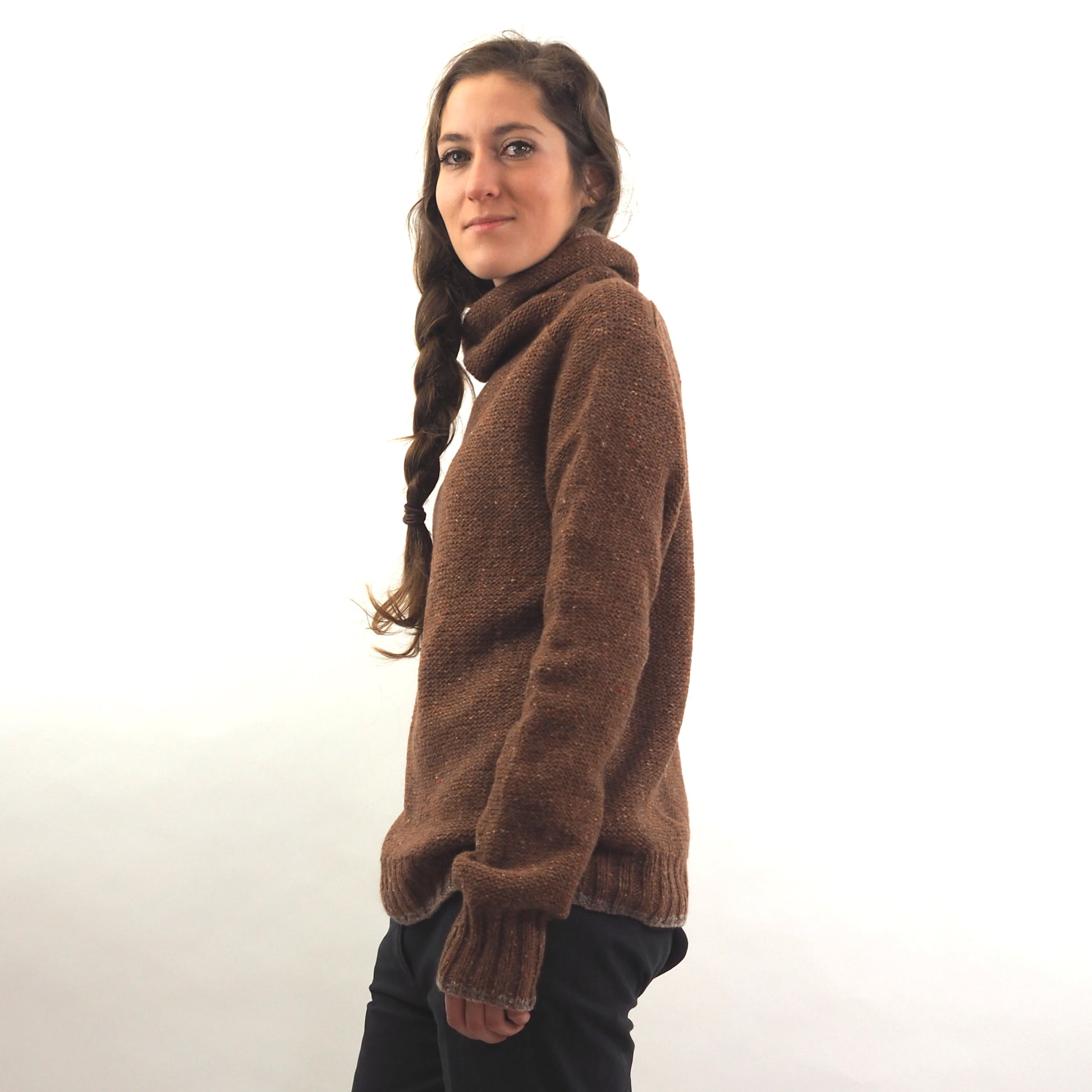MARIS wird nahtlos von oben nach unten in Runden gearbeitet. Der Halsausschnitt wird mit verkürzten Reihen geformt, die Schultern mit der "Contiguous Methode". Der gesamte Pullover wird auf der Innensteite gestrickt, um das Stricken von linken Maschen zu vermeiden.