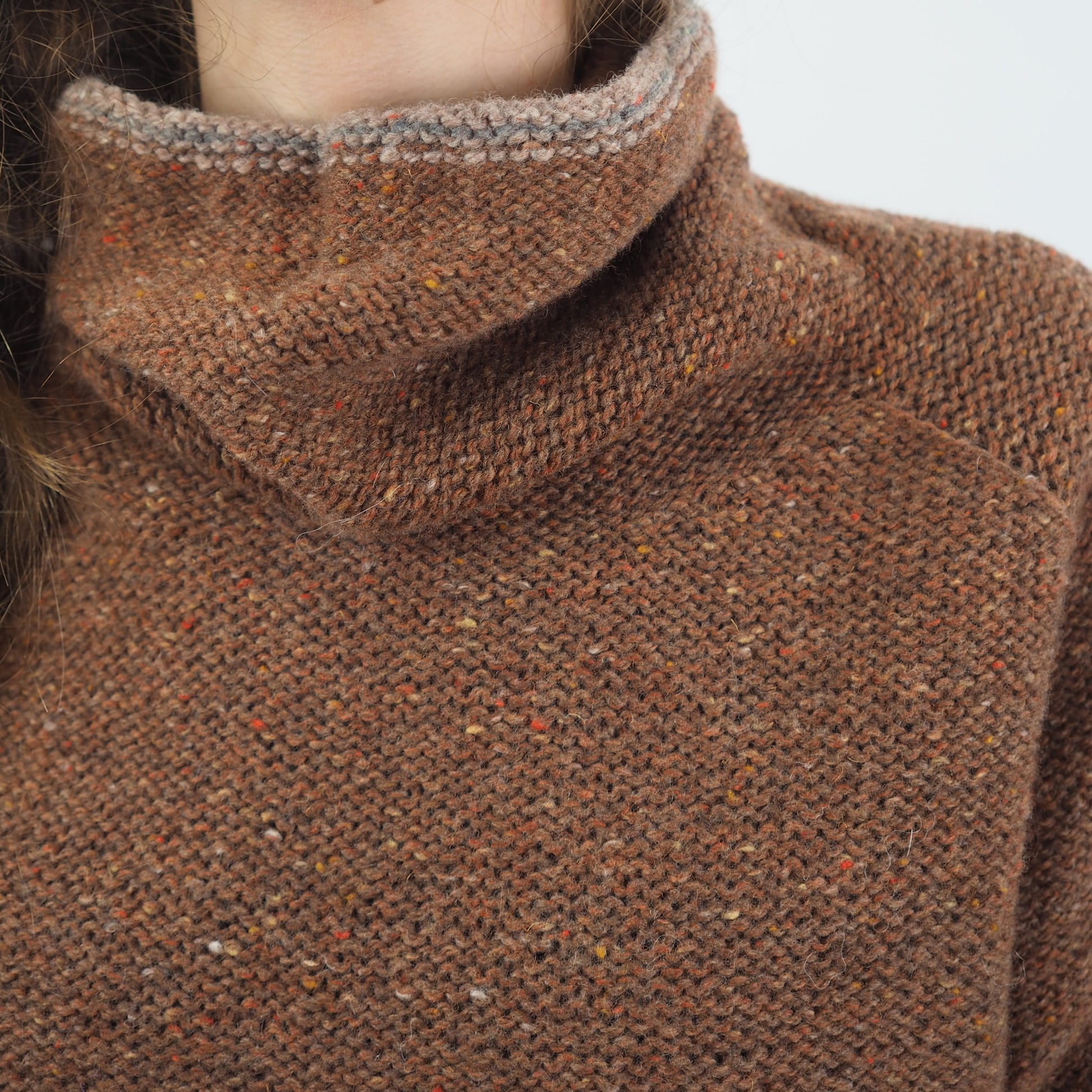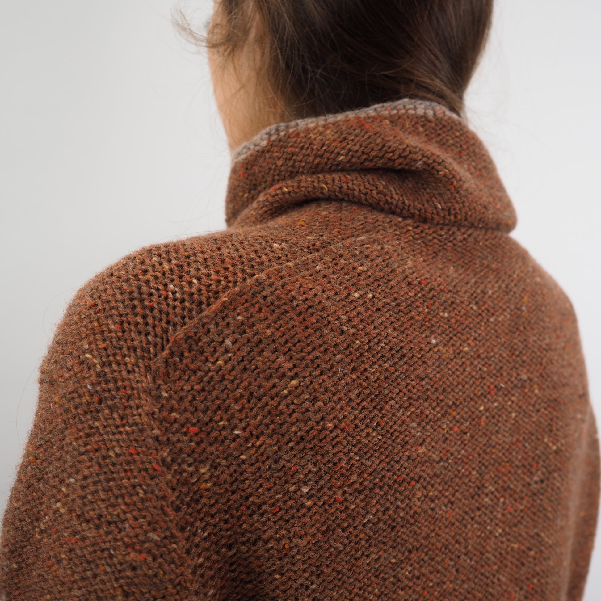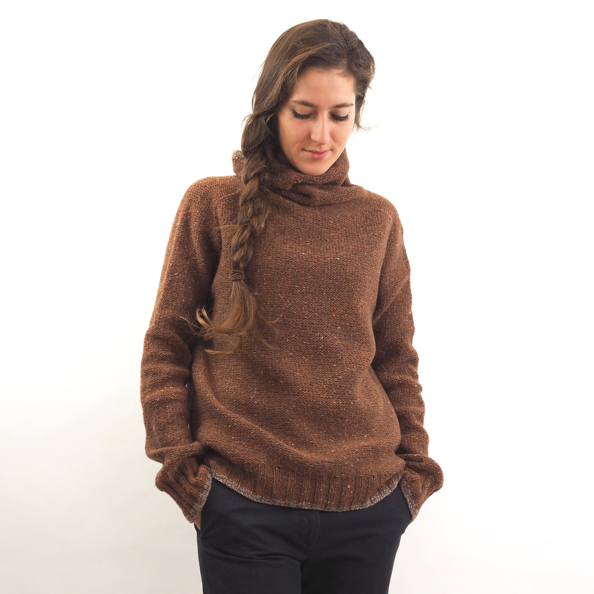 MARIS wird nahtlos von oben nach unten in Runden gearbeitet. Der Halsausschnitt wird mit verkürzten Reihen geformt, die Schultern mit der "Contiguous Methode". Der gesamte Pullover wird auf der Innensteite gestrickt, um das Stricken von linken Maschen zu vermeiden.