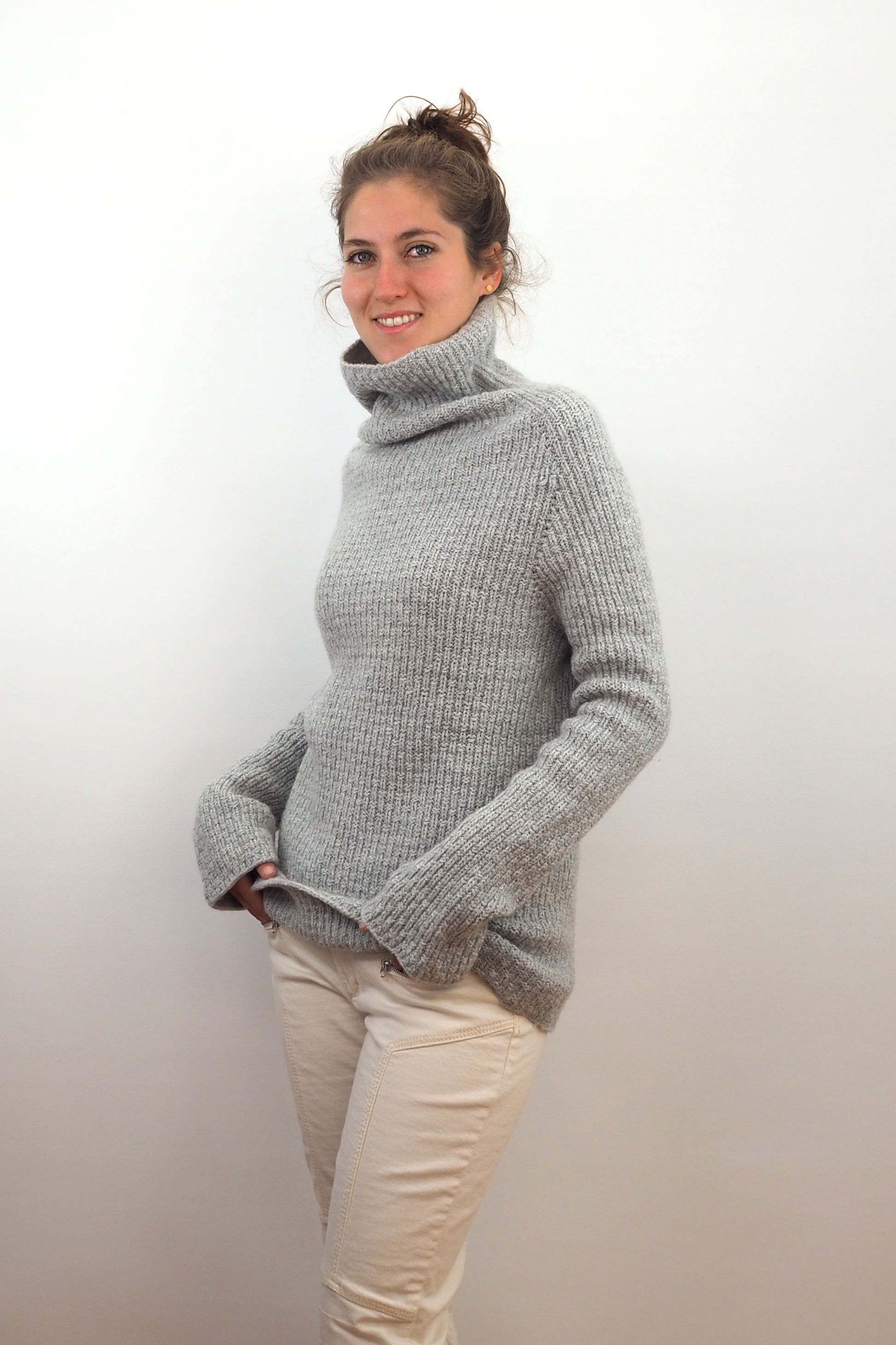 Erfahrung im Rundstricken und Flachstricken mit Rundnadeln und Nadelspiel (oder Magic Loop) für die Ärmel, Kenntnis von geneigten Zunahmen (m1L /m1R ) rechts- und links-gestrickt.