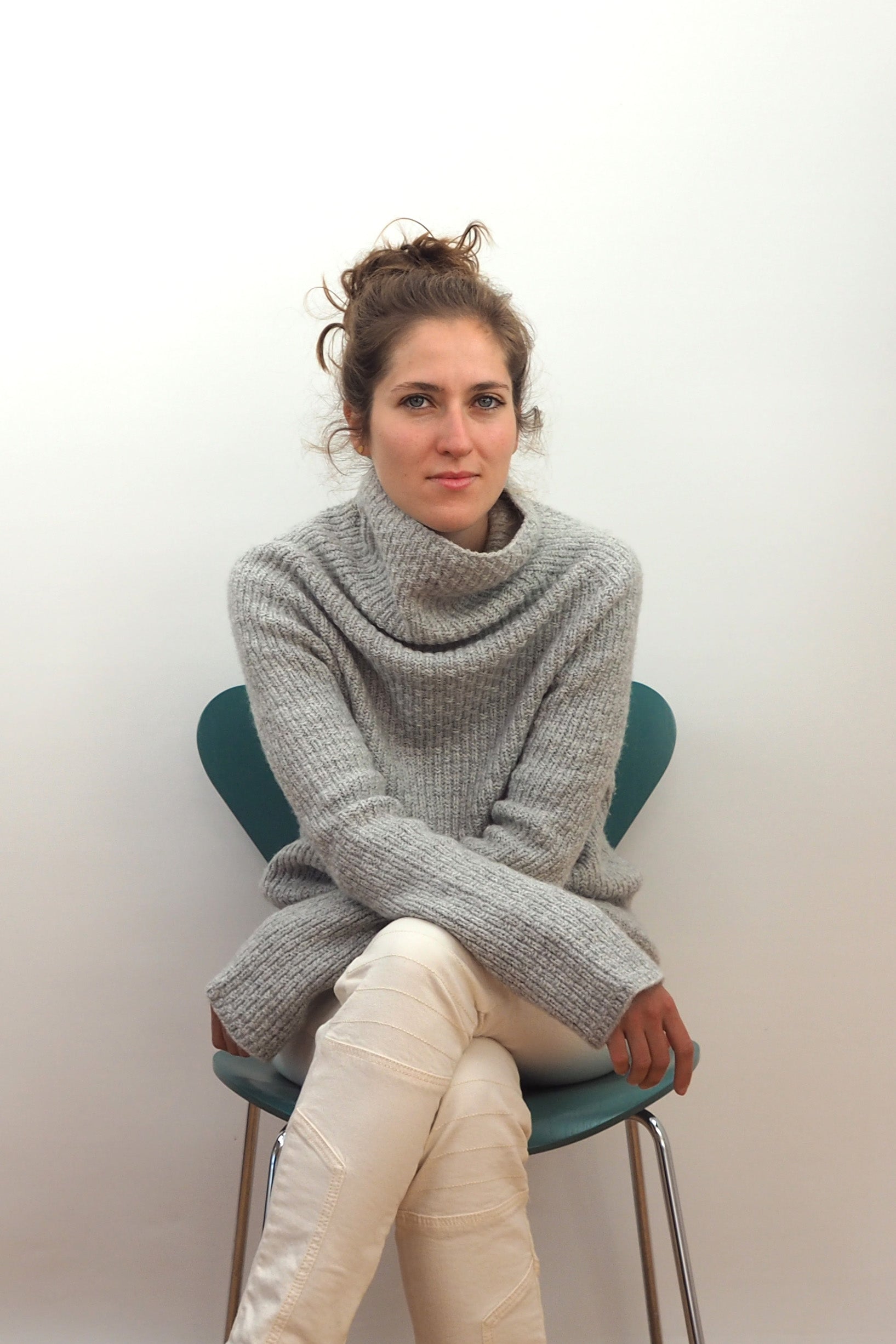 ALMA von Regina Mössme, gestrickt mit HERZFASER NO.14 in der Farbe ZEITFLUSS unserer MEISTERSTÜCKE – FARBIGE BILDER von Herzfasern – exklusiv bei Herr U am Amalienpark.