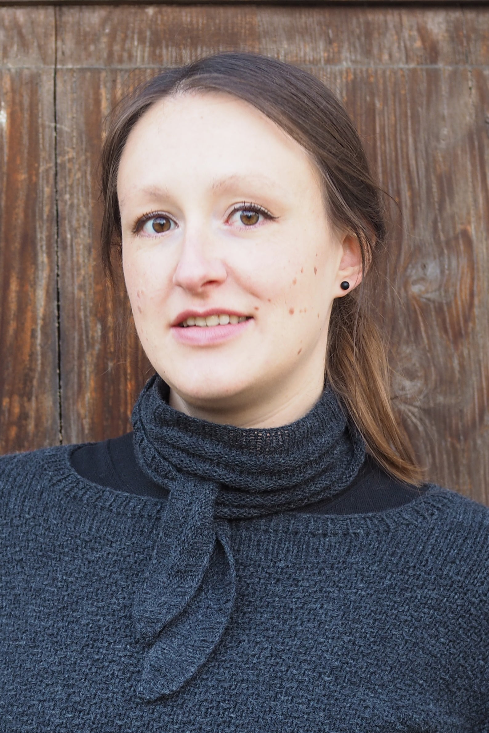 ALMA von Regina Mössme, gestrickt mit HERZFASER NO.14 in der Farbe ZEITFLUSS unserer MEISTERSTÜCKE – FARBIGE BILDER von Herzfasern – exklusiv bei Herr U am Amalienpark.