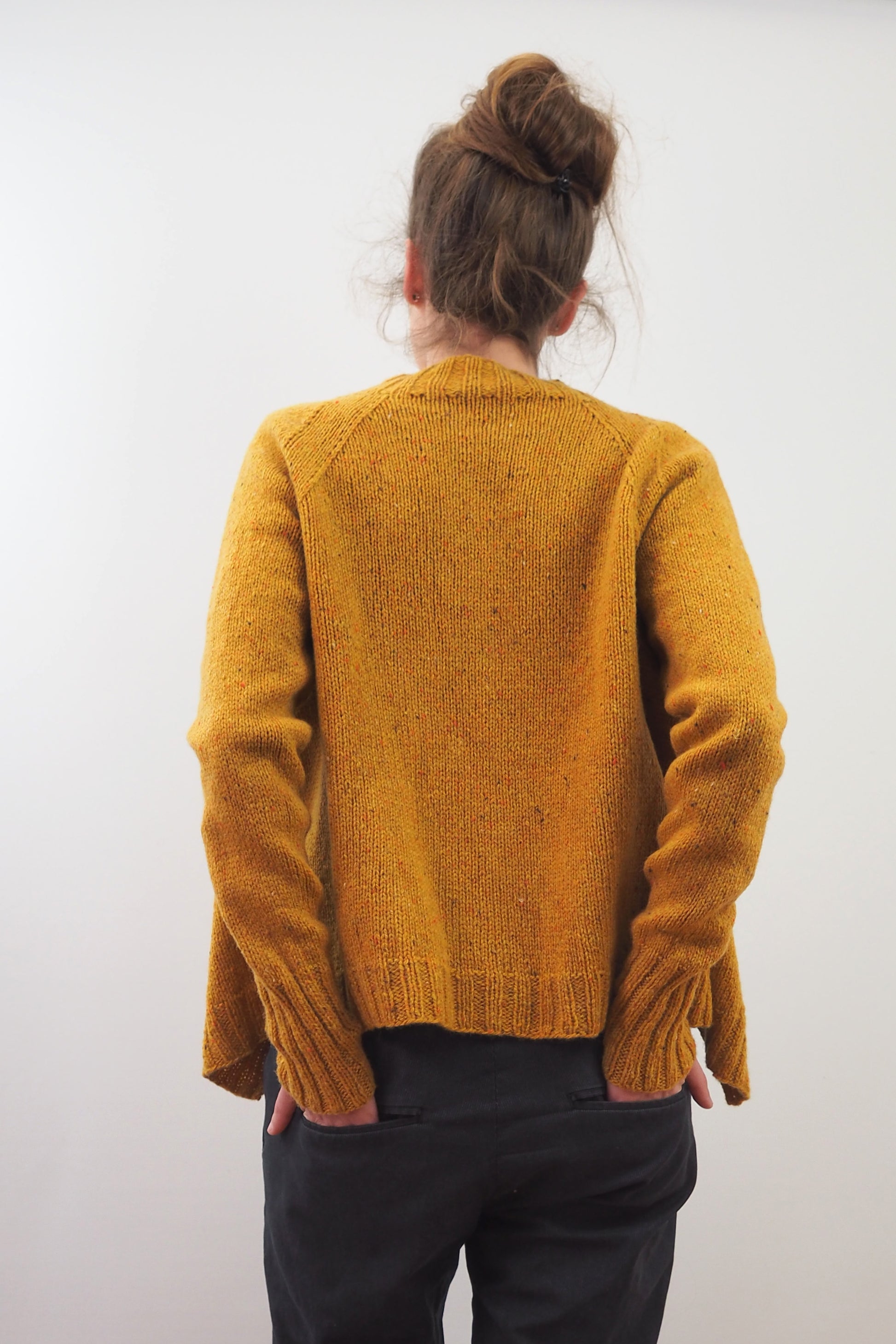 SYDNEY wird nahtlos von unten nach oben gestrickt, mit Raglanabnahmen und verkürzten Reihen zur Formung des Halsausschnitts.