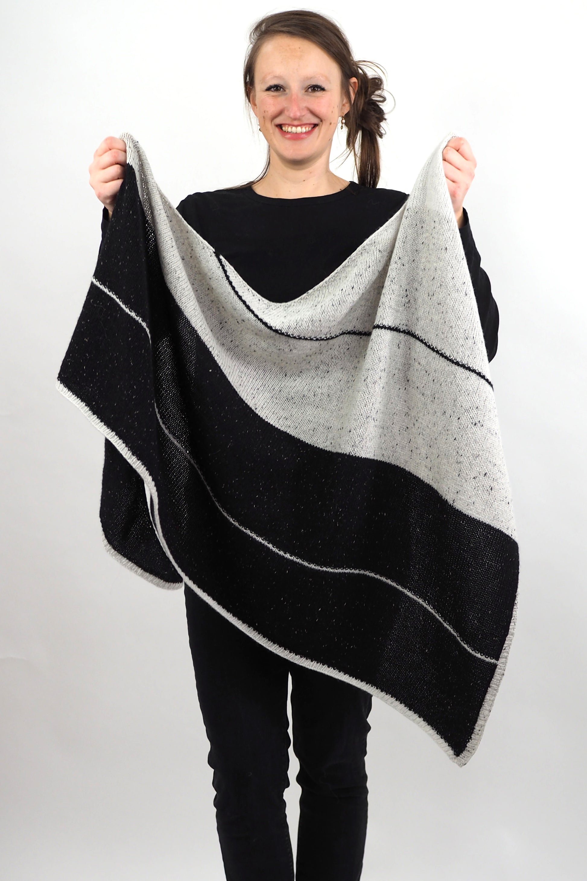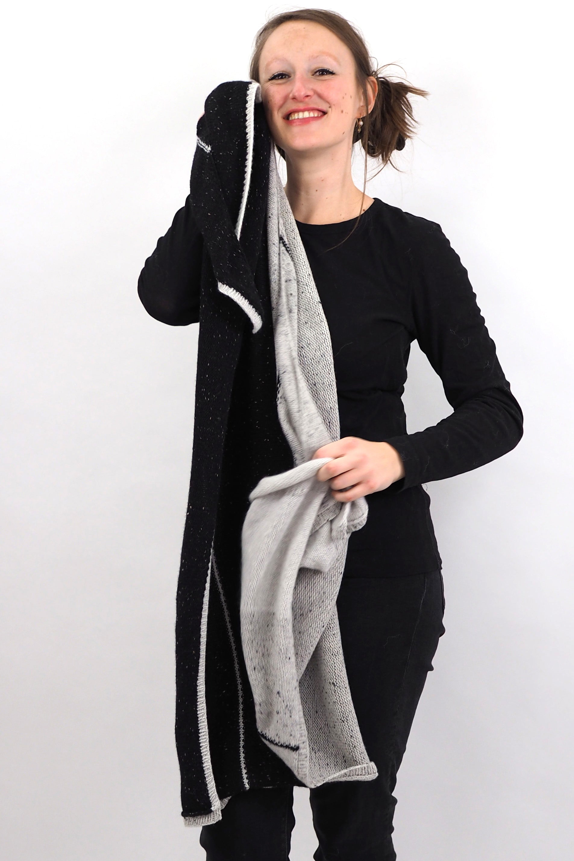 Garn A, Farbe 1: LAMANA COMO 57 Marmor 2 Knäuel. Garn B, Farbe 1: LAMANA COMO TWEED T 57 Marmor 3 Knäuel. Garn B, Farbe 2: LAMANA COMO TWEED T 01 Schwarz 5 Knäuel.