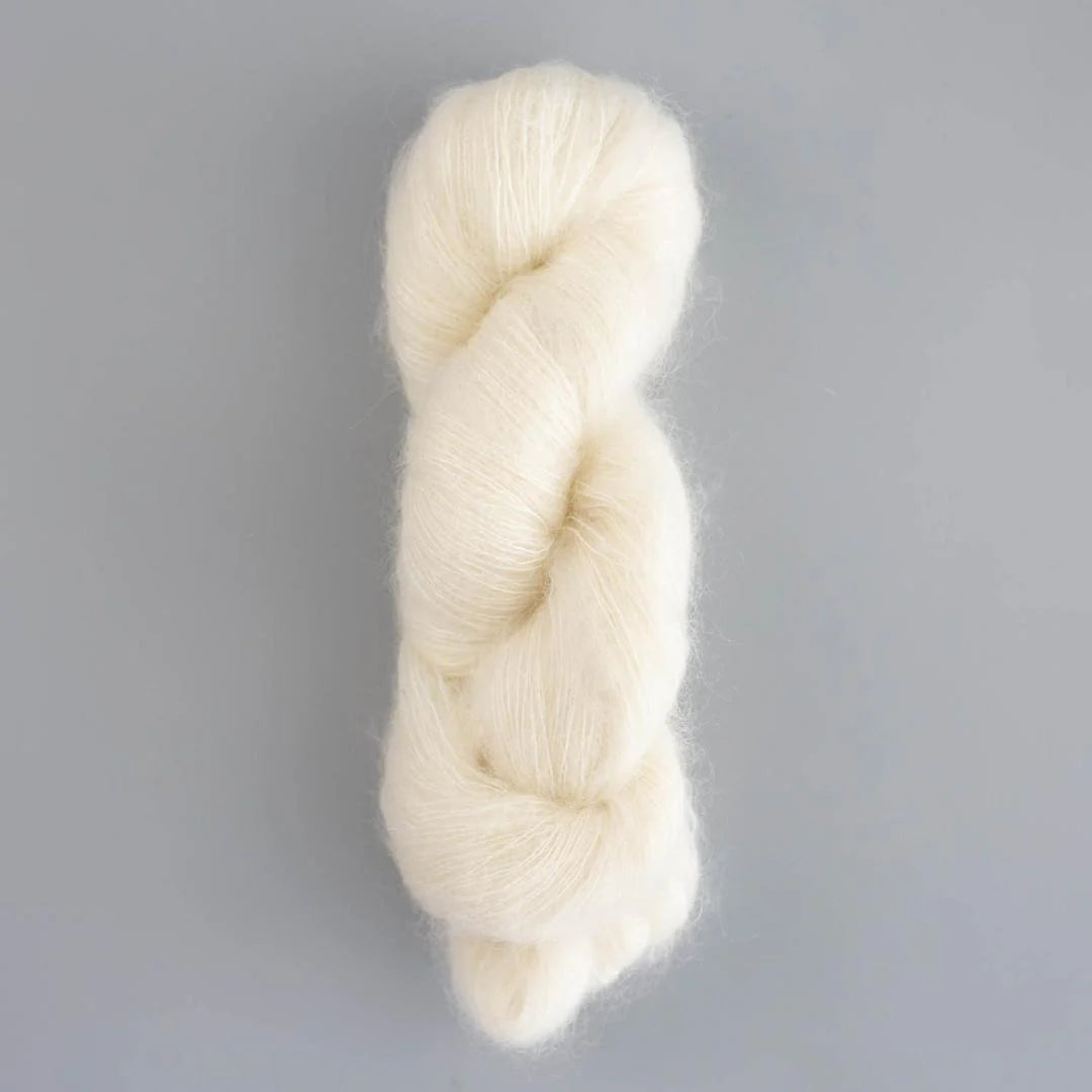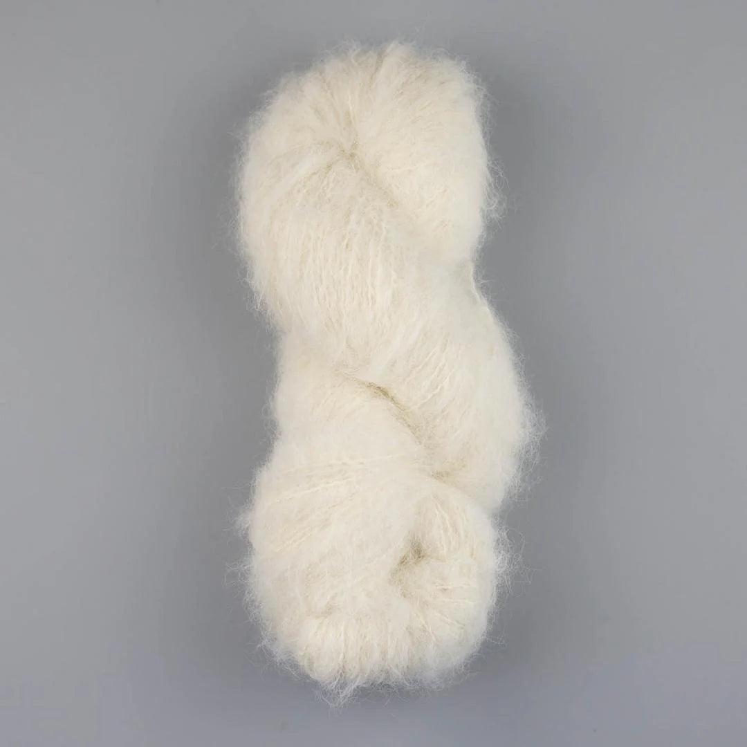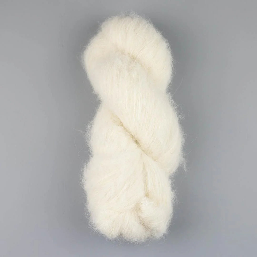 TRILOGY Alpaka, Seide, Mohair ungefärbtDas wohl weichste und luxuriöseste unserer Färbergarne: Butterweiches Babyalpaka (21-23 Micron) mit flauschigem Super Kid Mohair umhüllen feine Maulbeerseide. Ungefärbt naturweiß zum Färben oder direkt zum Verstricken.