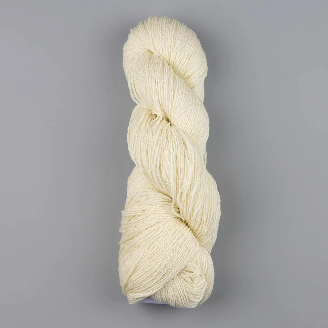 ILLAPU Wolle mit Lurex ungefärbtSuperwash-Wolle (21.5 Micron) vereint mit Lurex auf 100g Strängen, ungefärbt naturweiß zum Färben oder direkt zum Verstricken.
