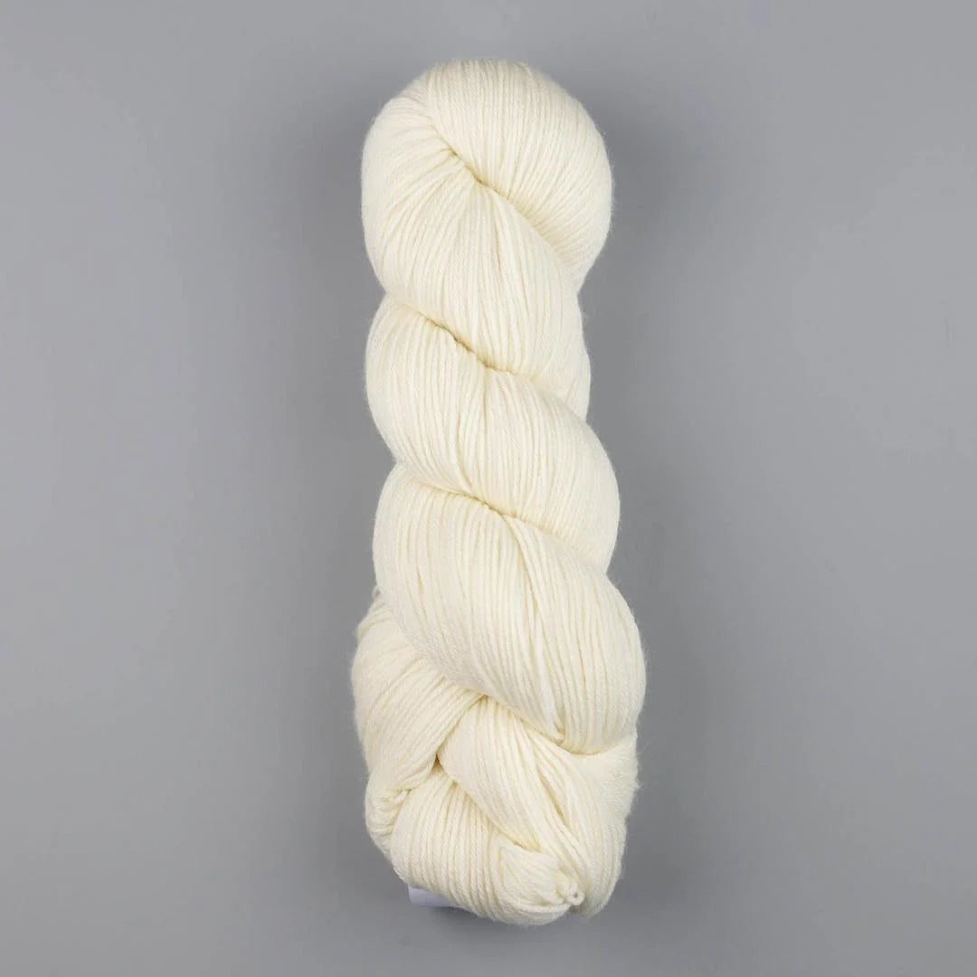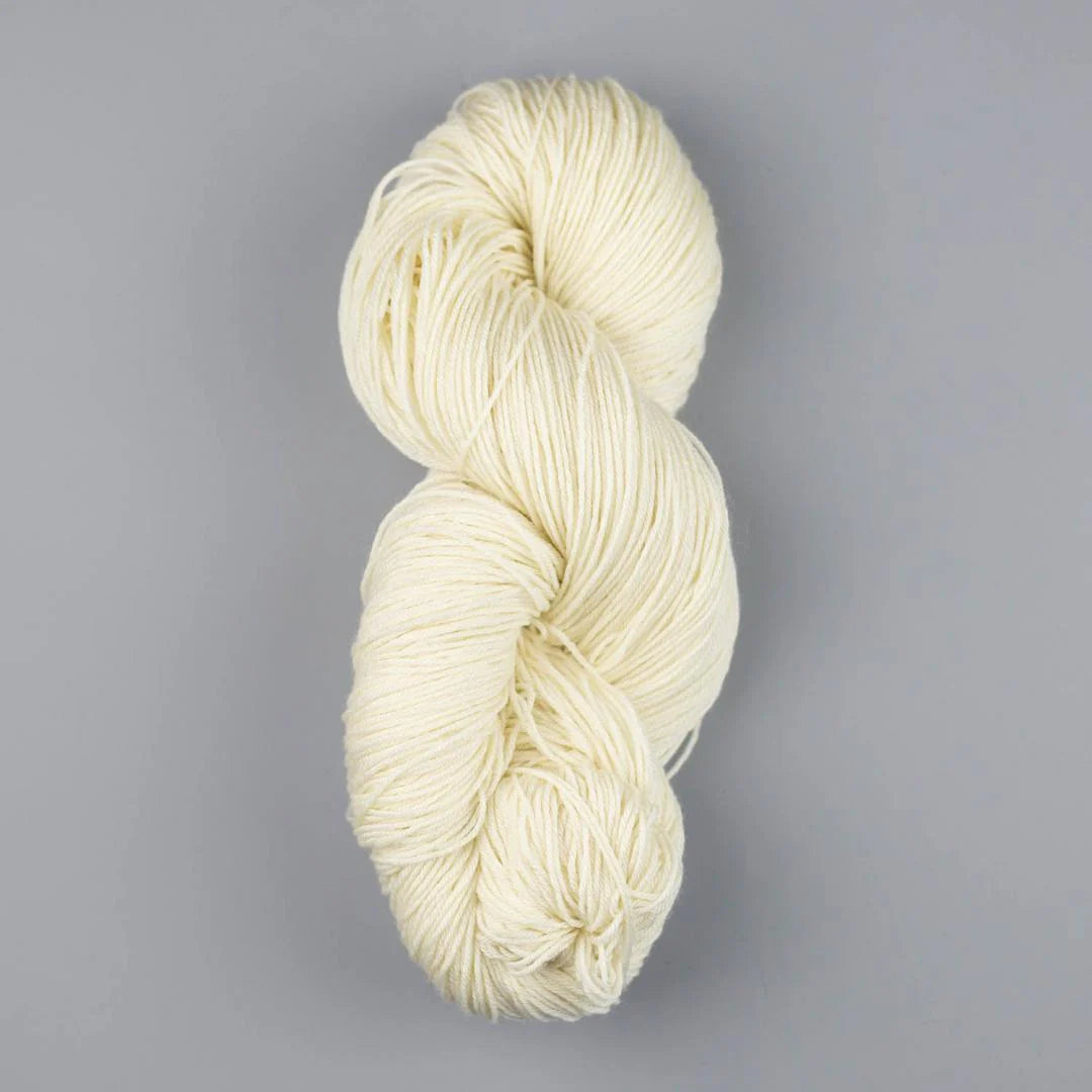 MUYUNA Superwash Wolle ungefärbtWeiche, pflegeleichte Schurwolle (25 Micron), superwash behandelt auf 100g Strängen, ungefärbt naturweiß zum Färben oder direkt zum Verstricken.