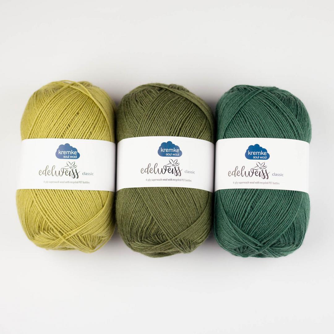 Im Set enthalten:• Kremke Edelweiss Alpaka 4-fach (25 g = 100 m) 65 % Schurwolle, 25 % Polyamid, 10 % Alpaka