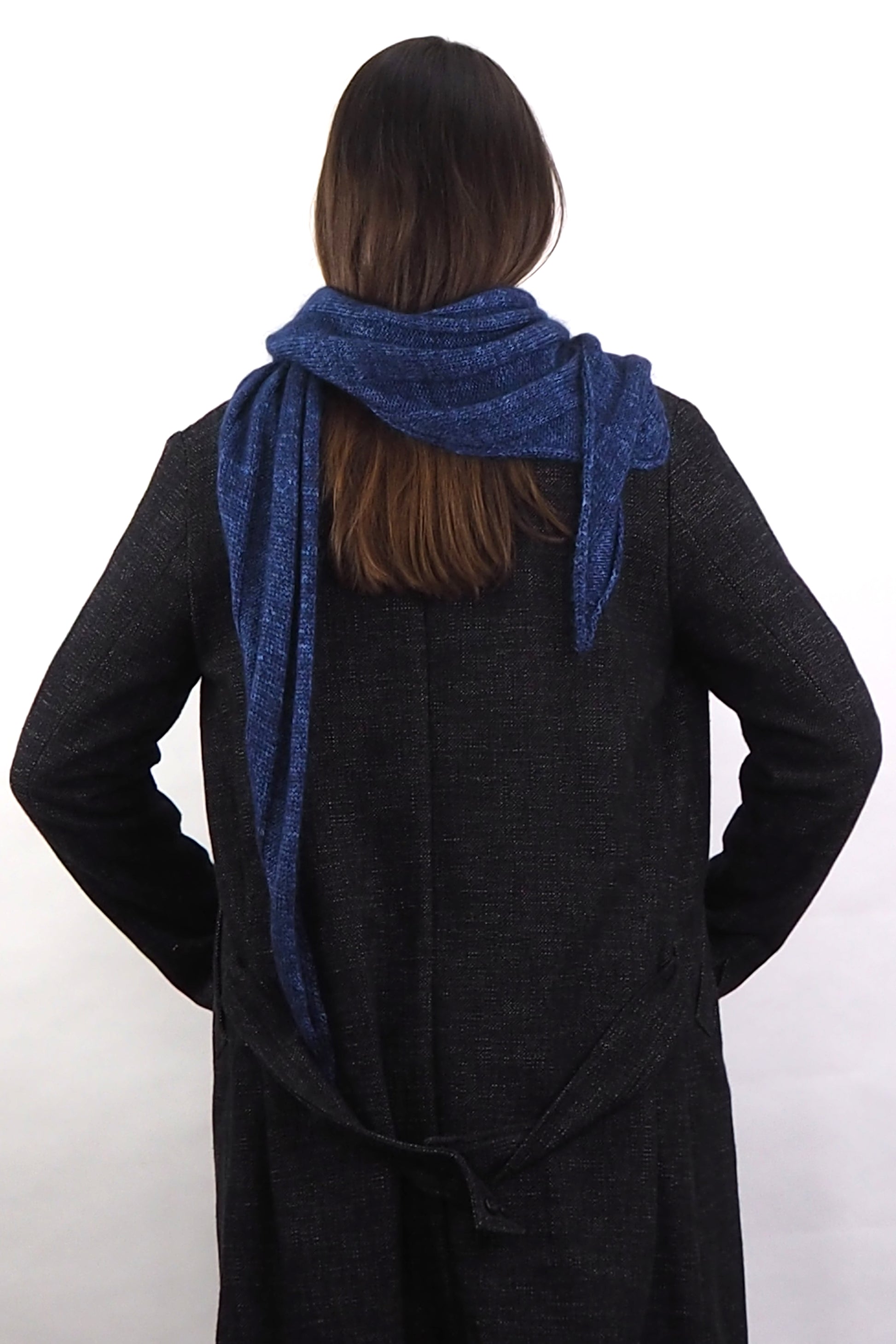 AYLA is a timeless triangular shawl with a clean, striped design. It can be worn beautifully draped open, where it falls softly and lightly. It looks just as lovely when loosely wrapped around the neck in two to three turns. The two short edges are finished with an I-cord, creating a neat, high-quality edge that harmoniously completes the design. Our new favorite shawl is knitted in N°50 by Herzfasern.